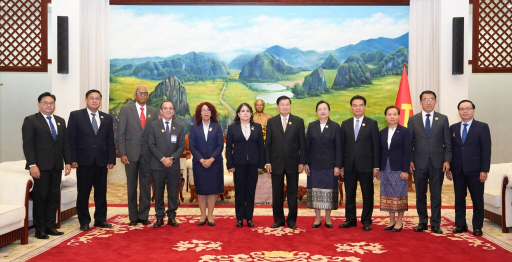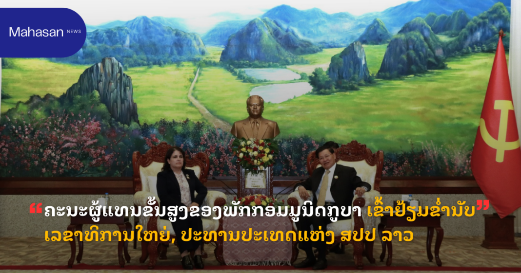 ຂປລ. ໃນວັນທີ 3 ທັນວາ2025, ທີ່ສໍານັກງານສູນກາງພັກ, ສະຫາຍ ທອງລຸນ ສີສຸລິດ ເລຂາ ທິການໃຫຍ່ ຄະນະບໍລິຫານງານສູນກາງພັກປະຊາຊົນປະຕິວັດລາວ, ປະທານປະເທດແຫ່ງ ສປປ ລາວ ໄດ້ຕ້ອນຮັບການເຂົ້າຢ້ຽມຂໍ່ານັບຂອງ ສະຫາຍ ນາງ ມາຣຕາ ອາຢາລາ ອາວີລາ (Marta Ayala Ávila), ກໍາມະການກົມການເມືອງສູນກາງພັກ, ອໍານວຍການໃຫຍ່ສູນວິສາວະກໍາກຳມະພັນ ແລະ ເຕັກໂນໂລຊີຊີວະພາບ ພ້ອມດ້ວຍຄະນະຜູ້ແທນຂັ້ນສູງພັກ-ລັດແຫ່ງ ສ ກູບາ ທີ່ເດີນທາງມາຢ້ຽມຢາມ ແລະ ເຮັດວຽກຢູ່ ສປປ ລາວ ໃນລະຫວ່າງວັນທີ 1-3 ທັນວາ 2025.