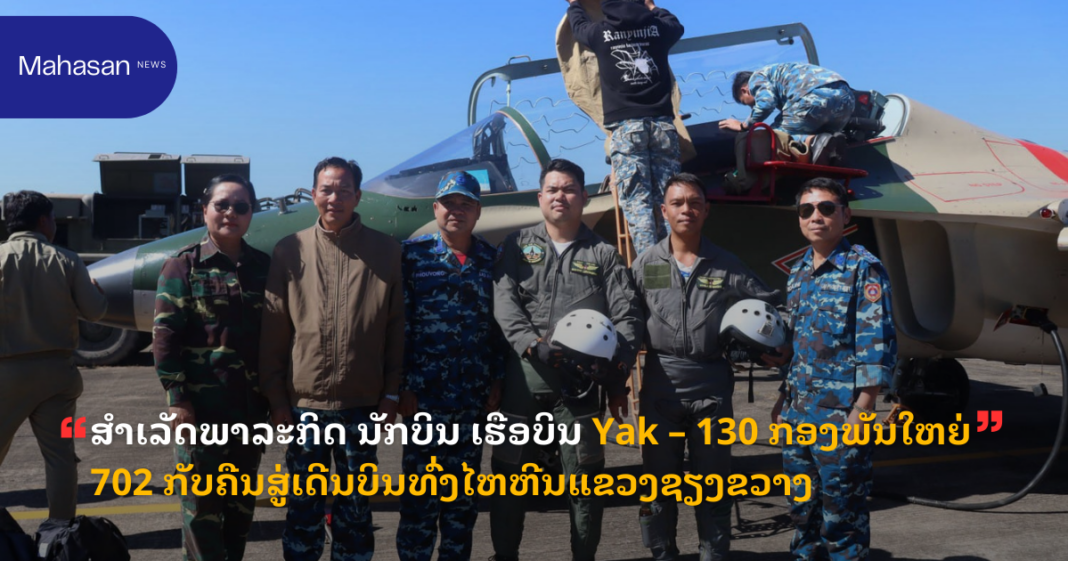 ພາຍຫຼັງສໍາເລັດໜ້າທີ່ຕາມການມອບໝາຍຂອງຂັ້ນເທິງ ກໍໄດ້ນໍາເຮືອບິນ Yak- 130 ກັບຄືນສູ່ເດີນບິນທົ່ງໄຫຫິນແຂວງຊຽງຂວາງດ້ວຍຄວາມ ປອດໄພ.ສຳເລັດພາລະກິດ ນັກບິນ ເຮືອບິນ Yak – 130 ກອງພັນໃຫຍ່ 702 ກັບຄືນສູ່ເດີນບິນທົ່ງໄຫຫີນແຂວງຊຽງຂວາງໜັງສືພິມຊຽງຂວາງມີໄຊ ລາຍງານວ່າ: ຫຼັງຈາກກອງບັນຊາການທະຫານອາກາດ-ກອງພັນໃຫຍ່ 702 ໄດ້ຮັບໜ້າທີ່ ຈາກຂັ້ນເທິງມອບໝາຍ ໃນວັນທີ 2 ທັນວາ 2025 ນີ້,ໃຫ້ນໍາເຮືອບິນ Yak- 130 ຂຶ້ນບິນສະແດງຮັບໃຊ້ ງານສະເຫີມສະຫຼອງວັນສະຖາປະນາ ສປປ ລາວ ຄົບຮອບ 50 ປີ.ສໍາລັບບົດບິນສະແດງຜ່ານປະກອບມີ 1 ບົດຄື ບົດບິນສວນສະໜາມບິນໂຊຢູ່ເທິງນ່ານຟ້າດ້ວຍທ່ວງທ່າ ແລະ ຈັງຫວະທີ່ໂດດເດັ່ນ ສ້າງຄວາມປະທັບໃຈໃຫ້ແກ່ສາຍຕາຊາວປະຊາທັງຫຼາຍທີ່ເຂົ້າມາຊົມໃນການບິນສະແດງຮັບໃຊ້ວັນຊາດທີ 2 ທັນວາ ເຊິ່ງບິນໂຊໂດຍ ສະຫາຍ ຮ້ອຍ ເອກ ສອນລາ ສິມມາວົງ ນັກບິນ Yak- 130 ກອງພັນໃຫຍ່ 702. ພາຍຫຼັງສໍາເລັດໜ້າທີ່ຕາມການມອບໝາຍຂອງຂັ້ນເທິງ ກໍໄດ້ນໍາເຮືອບິນ Yak- 130 ກັບຄືນສູ່ເດີນບິນທົ່ງໄຫຫິນແຂວງຊຽງຂວາງດ້ວຍຄວາມ ປອດໄພ.