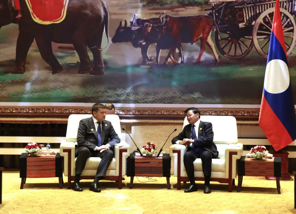 ໃນວັນທີ 2 ທັນວາຜ່ານມາ ທີ່ຫໍປະຊຸມແຫ່ງຊາດ, ທ່ານ ທອງລຸນ ສີສຸລິດ ເລຂາທິການໃຫຍ່ຄະນະບໍລິຫານງານສູນກາງພັກປະຊາຊົນປະຕິວັດລາວ ປະທານປະເທດແຫ່ງສປປ ລາວ ໄດ້ຕ້ອນ ຮັບການເຂົ້າຢ້ຽມຂໍ່ານັບຂອງທ່ານ ນິໂກລາຍ ຊູຣາວະໂລບ ຮອງປະທານສະພາສູງແຫ່ງສະຫະພັນ ຣັດເຊຍ ປະທານສະມາຄົມມິດຕະພາບລັດຖະສະພາຣັດເຊຍ-ລາວພ້ອມດ້ວຍຄະນະ ໃນໂອກາດເດີນທາງມາເຂົ້າຮ່ວມພິທີສະເຫຼີມສະຫຼອງວັນສະຖາປະນາສປປ ລາວ ຄົບຮອບ 50 ປີ.