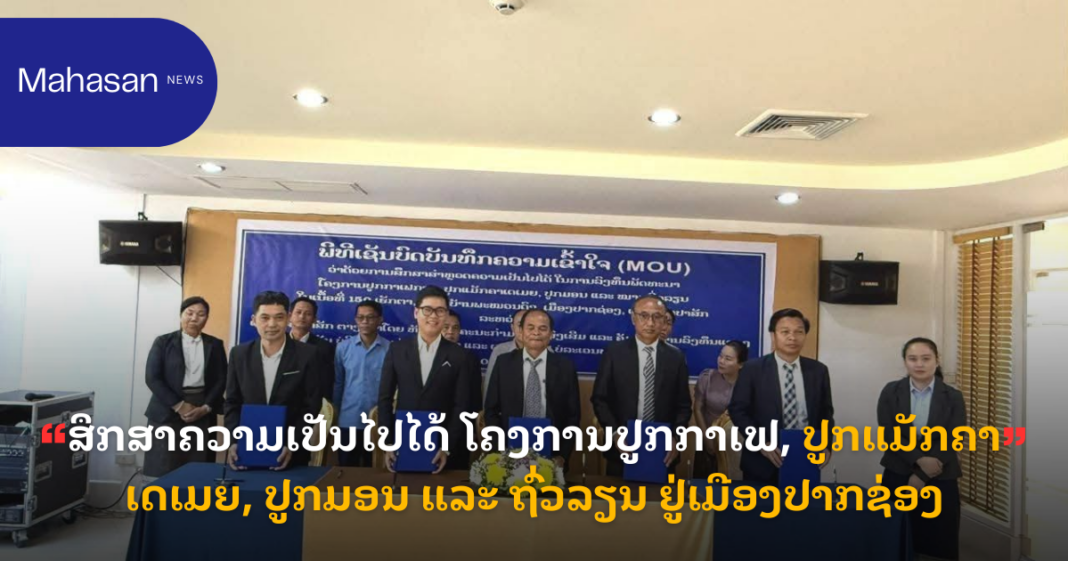 ແຫລ່ງຂ່າວຈາກ ແຂວງຈຳປາສັກ ໃຫ້ຮູ້ວ່າ: ພິທີເຊັນບົດບັນທຶກຄວາມເຂົ້າໃຈ ວ່າດ້ວຍການສຶກສາສໍາຫລວດຄວາມເປັນໄປໄດ້ ໃນການລົງທຶນພັດທະນາໂຄງການປູກກາເຟ, ປູກແມັກຄາເດເມຍ, ປູກມອນ ແລະ ຖົ່ວລຽນ ໃນເນື້ອທີ່ 150 ເຮັກຕາ ຢູ່ເຂດບ້ານພະຫວນດົງ ເມືອງປາກຊ່ອງ ແຂວງຈຳປາສັກ ລະຫວ່າງ ອົງການປົກຄອງແຂວງ ກັບ ບໍລິສັດ ຫຸ້ນສ່ວນກະສິກຳ ແລະ ຜະລິດກາເຟ ບໍລະເວນປາກຊ່ອງ ຈຳກັດ ຈັດຂຶ້ນໃນວັນທີ 5 ທັນວາ 2025 ທີ່ແຂວງຈຳປາສັກ. ຕາງໜ້າລົງນາມໂດຍ ທ່ານ ບຸນມີ ຄຳພິທູນ ຄະນະຫ້ອງການຄະນະກຳມະການສົ່ງເສີມ ແລະ ຄຸ້ມຄອງການລົງທຶນແຂວງຈຳປາສັກ ແລະ ທ່ານ ຫງຽນ ວັນ ຮຸ່ງ ອໍານວຍການບໍລິສັດ ຫຸ້ນສ່ວນກະສິກຳ ແລະ ຜະລິດກາເຟ ບໍລະເວນ ປາກຊ່ອງ ຈຳກັດ, ມີທ່ານ ສົມບູນ ເຮືອງວົງສາ ຄະນະປະຈໍາພັກແຂວງ ຮອງປະທານຄະນະກໍາມະການປົກຄອງແຂວງຈຳປາສັກ, ທ່ານ ຄໍາ ນີລາວົງ ຫົວໜ້າພະແນກກະສິກຳ ແລະ ສິ່ງແວດລ້ອມແຂວງ, ທ່ານ ຄໍາຂອດ ໝື່ນຫລວງ ປະທານຄະນະກຳມະການປົກຄອງເມືອງປາກຊ່ອງ ພ້ອມດ້ວຍພະແນກການ ແລະ ພະນັກງານກ່ຽວຂ້ອງທັງສອງຝ່າຍເຂົ້າຮ່ວມ.