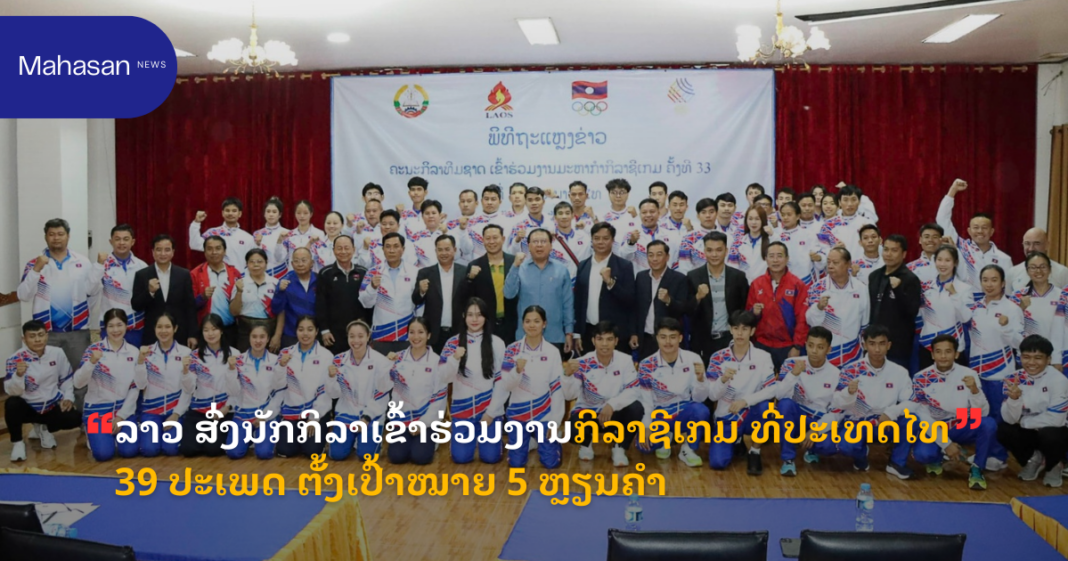 ພິທີຖະແຫຼງຂ່າວການກະກຽມຄວາມພ້ອມ ແລະ ໂອ້ລົມທັບນັກກິລາລາວ ກຽມເຂົ້າຮ່ວມງານມະຫະກຳກິລາຊີເກມ ຄັ້ງທີ 33 ທີ່ປະເທດໄທ ເປັນເຈົ້າພາບ ຈັດຂຶ້ນເມື່ອວັນທີ 5 ທັນວາ 2025 ທີ່ຫ້ອງປະຊຸມຄະນະກໍາການໂອແລມປີກແຫ່ງຊາດລາວ (ຄອລ) ໃຫ້ກຽດເຂົ້າຮ່ວມໂດຍ ທ່ານ ກິ່ງມະໂນ ພົມມະຫາໄຊ ຮອງລັດຖະມົນຕີກະຊວງສຶກສາທິການ ແລະ ກິລາ, ທັງເປັນຮອງປະທານ ຄອລ, ມີຮອງປະທານ ແລະ ເລຂາທິການ ຄອລ, ຄະນະນຳກົມກິລາລະດັບສູງ ພ້ອມດ້ວຍຄະນະ, ຄູຝຶກ-ນັກກິລາ ແລະ ຜູ້ໃຫ້ການສະໜັບສະໜູນ ເຂົ້າຮ່ວມ.