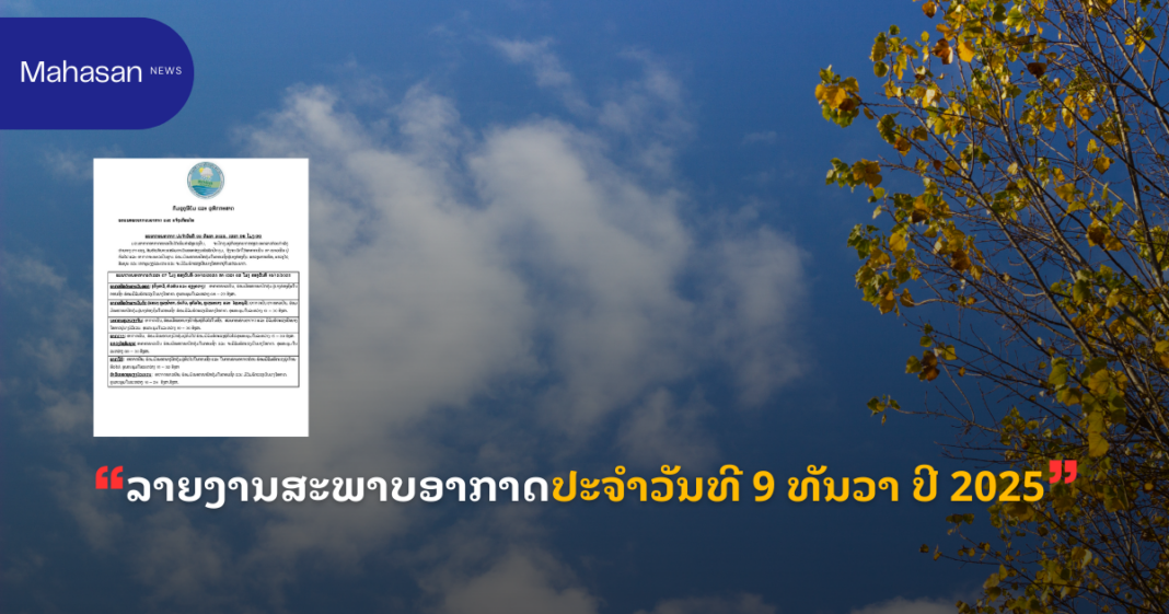ແຂວງໄຊສົມບູນ: ອາກາດໜາວເຢັນ ພ້ອມມີໝອກໜາປົກຫຸ້ມໃນຕອນເຊົ້າ ແລະ ຈະມີລົມພັດແຮງເປັນບາງໂອກາດ ອຸນຫະພູມໃນລະຫວ່າງ 09–30 ອົງສາ.