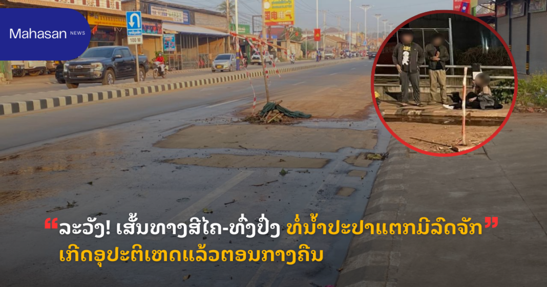 ວັນທີ 9 ທັນວາ 2025 ປະຊາຊົນສ່ອງແສງວ່າ: ມີທໍ່ນໍ້າປະປາແຕກ ຢູ່ເສັ້ນທາງສີໄຄ-ທົ່ງປົ່ງ ເຂດບ້ານໂພສີໜ້າຮ້ານອາເມຊອນ ເມືອງສີໂຄດຕະບອງ ນະຄອນຫລວງວຽງຈັນ. ທໍ່ນໍ້າໄດ້ແຕກຊືມມາໄດ້ 1 ອາທິດກວ່າແລ້ວ ໂດຍມີສາຍເຕືອນໄພອ້ອມກັນໄວ້ ແລະ ຈຸດດັ່ງກ່າວເຄີຍເກີດອຸປະຕິເຫດມາແລ້ວຫລາຍຄັ້ງ ໂດຍສະເພາະແມ່ນຜູ້ຂັບຂີ່ລົດຈັກໃນຕອນກາງຄືນ.