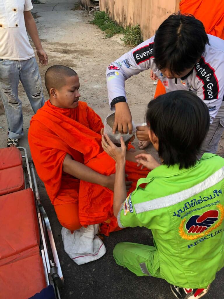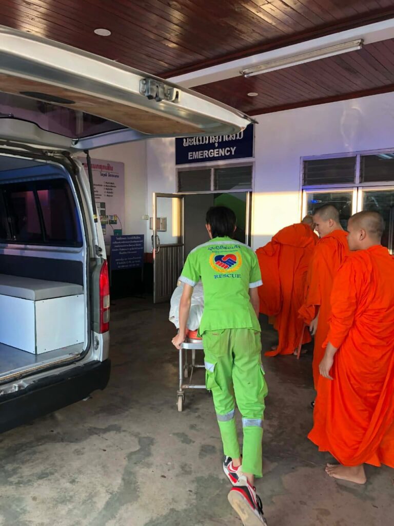 ເບື້ອງຕົ້ນໜ່ວຍກູ້ໄພ ປະຖົມພະຍາບານຂັ້ນຕົ້ນແລ້ວນຳສົ່ງຄົນເຈັບໄປຍັງໂຮງໝໍ 150 ຕຽງ ເພື່ອປິ່ນປົວ.