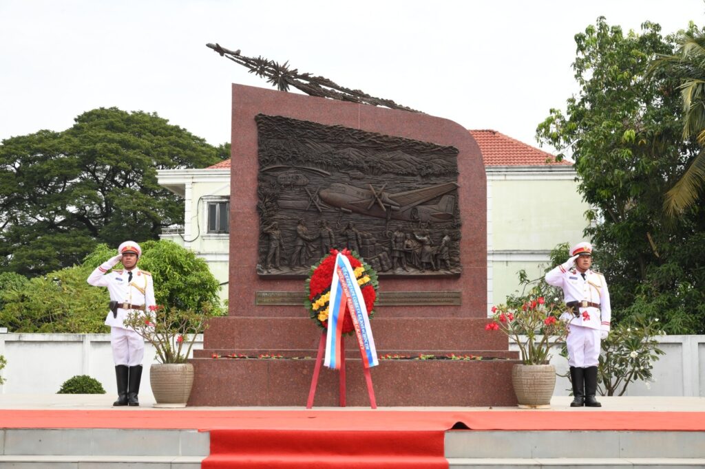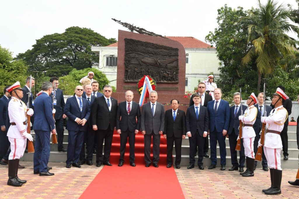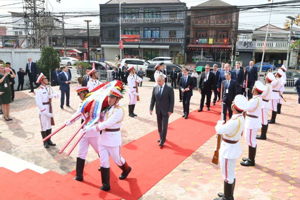 ວັນທີ 11 ພະຈິກ 2025 ທ່ານ ພົນເອກ ເຊກເກ ໂຊຍກູ ເລຂາທິການສະພາຄວາມໝັ້ນຄົງ ແຫ່ງ ສະຫະພັນຣັດເຊຍ ພ້ອມຄະນະ ໄດ້ເຂົ້າວາງພວງມາລາ ຢູ່ອະນຸສາວະລີນັກບິນ ອະດີດສະຫະພາບໂຊວຽດ ທີ່ເສຍຊີວິດຢູ່ ສປປ ລາວ ປີ 1960 ຮອດປີ 1973 ໃນເວລາປະຕິບັດໜ້າທີ່ບິນຂົນສົ່ງໃຫ້ການຊ່ວຍເຫຼືອແກ່ພີ່ນ້ອງປະຊາຊົນລາວ. ໃນໂອກາດທີ່ຄະນະຜູ້ແທນຂັ້ນສູງ ສະພາຄວາມໝັ້ນຄົງ ແຫ່ງ ສະຫະພັນຣັດເຊຍ ເດີນທາງມາຢ້ຽມຢາມ ແລະ ເຮັດວຽກຢູ່ ສປປ ລາວ ໃນລະຫວ່າງວັນທີ 10-12 ທັນວາ 2025.