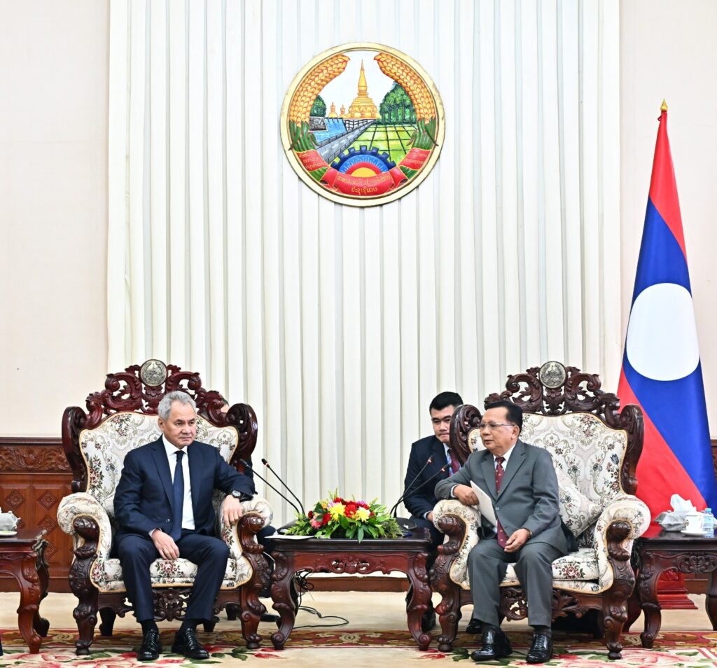 ຕອນແລງ ວັນທີ 11 ທັນວານີ້, ທີ່ສໍານັກງານນາຍົກລັດຖະມົນຕີ, ສະຫາຍ ພົນເອກ ຈັນສະໝອນ ຈັນຍາລາດ, ກໍາມະການກົມການເມືອງສູນກາງພັກ, ຮອງປະທານ, ຜູ້ປະຈໍາການຄະນະກໍາມະການປ້ອງກັນຊາດ-ປ້ອງກັນຄວາມສະຫງົບສູນກາງ, ຮອງນາຍົກລັດຖະມົນຕີ ແຫ່ງ ສປປ ລາວ ໄດ້ຕ້ອນຮັບສະຫາຍ ພົນເອກ ເຊີເກ ໂຊຍກູ, ເລຂາທິການສະພາຄວາມໝັ້ນຄົງ ແຫ່ງ ສ. ຣັດເຊຍ ພ້ອມດ້ວຍຄະນະ ໃນໂອກາດເດີນທາງມາຢ້ຽມຢາມ ແລະ ເຄື່ອນໄຫວເຮັດວຽກ ຢູ່ ສປປ ລາວ ຢ່າງເປັນທາງການ ໃນລະຫວ່າງວັນທີ 10-12 ທັນວາ 2025.