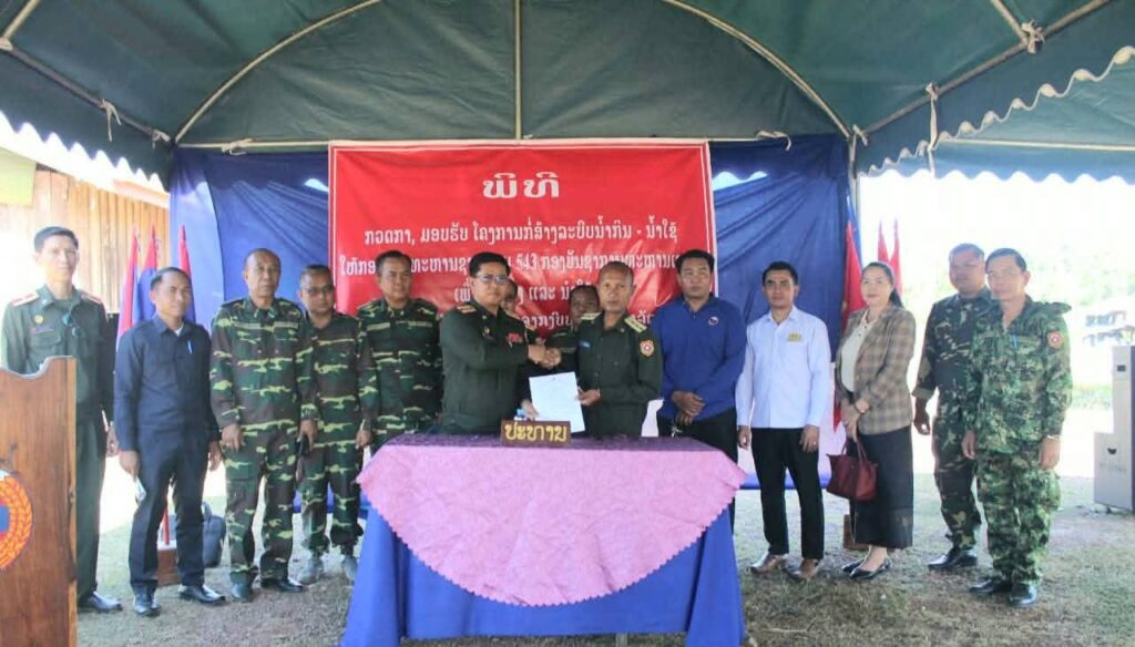 ແຫລ່ງຂ່າວຈາກ ແຂວງອັດຕະປື ໃຫ້ຮູ້ວ່າ: ພິທີມອບ-ຮັບ ໂຄງການກໍ່ສ້າງລະບົບນໍ້າກິນ-ນໍ້າໃຊ້ ໃຫ້ກອງຮ້ອຍທະຫານຊາຍແດນ 543 ທະການແຂວງອັດຕະປື ໄດ້ຈັດຂຶ້ນໃນອາທິດຜ່ານມາ ໂດຍມີທ່ານ ພັນເອກ ໄຊຍະພອນ ແກ້ວບົວພາສິດ ຫົວໜ້າຫ້ອງພະລາທິການທະຫານ ແຂວງອັດຕະປື, ມີຄະນະພັກ-ຄະນະບັນຊາ 5 ຫ້ອງ ກອງບັນຊາການທະຫານແຂວງ, ພະແນກການທີ່ກ່ຽວຂ້ອງຂອງແຂວງ ແລະ ພະນັກງານ-ນັກຮົບທົ່ວກອງຮ້ອຍທະຫານຊາຍແດນ 543 ເຂົ້າຮ່ວມ.