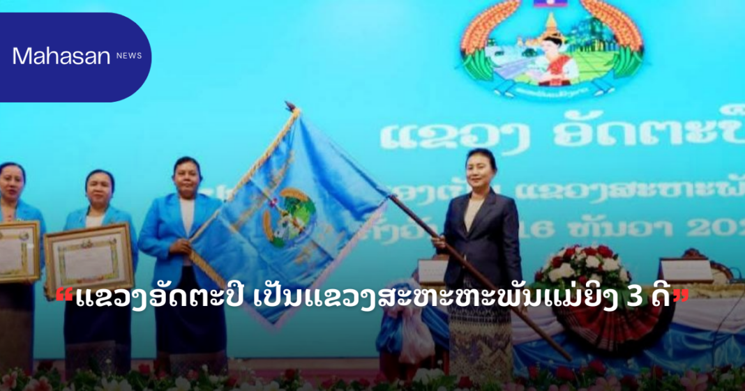 ແຂວງອັດຕະປື ໄດ້ປະກາດເປັນແຂວງສະຫະພັນແມ່ຍິງ 3 ດີ(ພົນລະເມືອງດີ, ພັດທະນາດີ, ສ້າງຄອບຄົວດີ) ເມື່ອມໍ່ໆມານີ້ ໂດຍມີ ທ່ານ ນາງ ບັນທະໄລ ແກ້ວມະນີວົງ ປະທານແນວລາວສ້າງຊາດແຂວງ, ມີທ່ານ ນາງ ຈັນເພັດ ຈັນທະມາດ ປະທານສະຫະພັນແມ່ຍິງແຂວງ ແລະ ພາກສ່ວນທີ່ກ່ຽວຂ້ອງເຂົ້າຮ່ວມ.