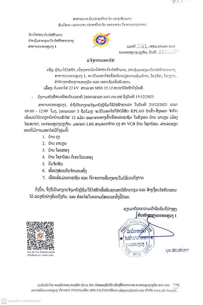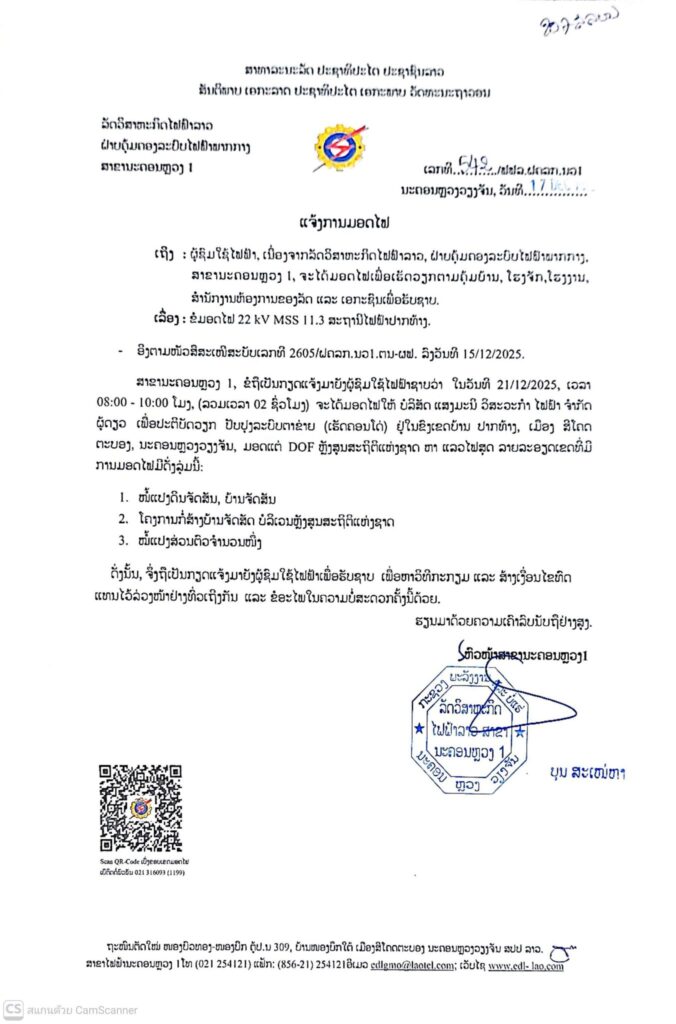 ແຈ້ງການ ແຈ້ງການມອດໄຟ ວັນທີ 21/12/2025 By Pele ທີ 18 December, 2025 0 216 Share FacebookTwitterPinterestWhatsApp Must read ແຈ້ງການຈາກພະແນກ ໂຍທາທິການ ແລະ ຂົນສົ່ງນະຄອນຫຼວງວຽງຈັນ ກ່ຽວກັບການສ້າງບ້ານຈັດສັນ ຫລື ຈັດສັນຕອນດິນ ດັ່ງນີ້ ທີ 18 December, 2025 ລາວ-ຫວຽດນາມ ສືບຕໍ່ຮ່ວມມືວຽກງານໄອຍະການປະຊາຊົນ ທີ 18 December, 2025 ຊ່ວງເທສສະການເເລກຂອງຂວັນສຳລັບໃຜທີ່ຍັງຄິດບໍ່ອອກວ່າຈະຫາຂອງຂວັນແບບໃດດີນີ້ເລີຍ! 15 ໄອເດຍຂອງຂວັນວັນຄຣິສມາດ ແລະ ປີໃຫມ່ 2025 ທີ 18 December, 2025 ເມືອງໄຊຍະບູລີ ຫາລືແກ້ໄຂບັນຫາການຕະຫລາດ ແລະ ການຕໍ່ລອງສິນຄ້າ ຂອງກຸ່ມລ້ຽງໄກ່ພັນໄຂ່ ທີ 18 December, 2025 Pele ທີ່ມາ:EDL LAOS ລັດວິສາຫະກິດໄຟຟ້າລາວ ສາຂານະຄອນຫຼວງ1 Share FacebookTwitterPinterestWhatsApp Previous articleແຈ້ງປັບລາຄານໍ້າມັນເຊື້ອໄຟເລິ່ມປະຕິບັດ 06:00 ໂມງຂອງວັນທີ 18/12/2025 ຕາມແຈ້ງການດັ່ງນີ້Next articleສະຫລຸບໂຄງການເຂົ້າເຖິງແຫລ່ງທຶນ-ຫລຸດຜ່ອນການຄຸ້ມຄອງເຄມີກະສິກຳ ທີ່ເປັນອັນຕະລາຍ ໃນລາວ - Advertisement - More articles ແຈ້ງການຈາກພະແນກ ໂຍທາທິການ ແລະ ຂົນສົ່ງນະຄອນຫຼວງວຽງຈັນ ກ່ຽວກັບການສ້າງບ້ານຈັດສັນ ຫລື ຈັດສັນຕອນດິນ ດັ່ງນີ້ ທີ 18 December, 2025 ແຈ້ງປັບລາຄານໍ້າມັນເຊື້ອໄຟເລິ່ມປະຕິບັດ 06:00 ໂມງຂອງວັນທີ 18/12/2025 ຕາມແຈ້ງການດັ່ງນີ້ ທີ 18 December, 2025 ແຈ້ງການມອດໄຟ ວັນທີ 22/12/2025 ທີ 17 December, 2025 LEAVE A REPLY Cancel reply Comment: Please enter your comment! Name:* Please enter your name here Email:* You have entered an incorrect email address! Please enter your email address here Website: Save my name, email, and website in this browser for the next time I comment. - Advertisement - Latest article ແຈ້ງການຈາກພະແນກ ໂຍທາທິການ ແລະ ຂົນສົ່ງນະຄອນຫຼວງວຽງຈັນ ກ່ຽວກັບການສ້າງບ້ານຈັດສັນ ຫລື ຈັດສັນຕອນດິນ ດັ່ງນີ້ ທີ 18 December, 2025 ລາວ-ຫວຽດນາມ ສືບຕໍ່ຮ່ວມມືວຽກງານໄອຍະການປະຊາຊົນ ທີ 18 December, 2025 ຊ່ວງເທສສະການເເລກຂອງຂວັນສຳລັບໃຜທີ່ຍັງຄິດບໍ່ອອກວ່າຈະຫາຂອງຂວັນແບບໃດດີນີ້ເລີຍ! 15 ໄອເດຍຂອງຂວັນວັນຄຣິສມາດ ແລະ ປີໃຫມ່ 2025 ທີ 18 December, 2025 ເມືອງໄຊຍະບູລີ ຫາລືແກ້ໄຂບັນຫາການຕະຫລາດ ແລະ ການຕໍ່ລອງສິນຄ້າ ຂອງກຸ່ມລ້ຽງໄກ່ພັນໄຂ່ ທີ 18 December, 2025 ເລີ່ມປະຕິບັດຕາມແຈ້ງການ ມ້າງເຄີບທາງລົດເມດ່ວນ BRT ພາບວັນທີ 18 ທັນວາ 2025 ທີ 18 December, 2025