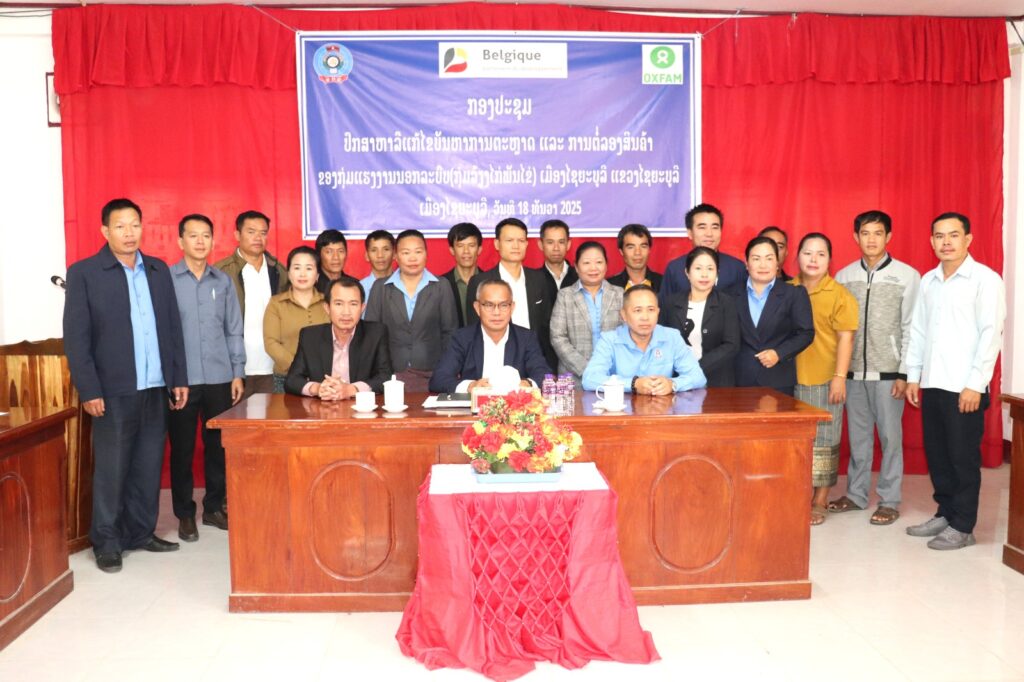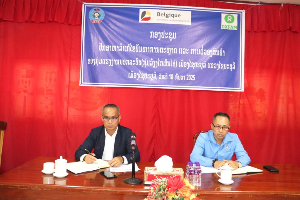 ແຫລ່ງຂ່າວຈາກ ແຂວງໄຊຍະບູລີ ໃຫ້ຮູ້ວ່າ: ຫ້ອງການ ສະຫະພັນກຳມະບານເມືອງໄຊຍະບູລີ ແຂວງໄຊຍະບູລີ ສົມທົບກັບສະຫະພັນກຳມະບານແຂວງ ແລະ ຫ້ອງການກະສິກຳ ແລະ ສິ່ງແວດລ້ອມເມືອງ ຈັດກອງປະຊຸມປຶກສາຫາລືແກ້ໄຂບັນຫາການຕະຫລາດ ແລະ ການຕໍ່ລອງສິນຄ້າ ຂອງກຸ່ມແຮງງານນອກລະບົບ (ກຸ່ມລ້ຽງໄກ່ພັນໄຂ່) ໃນວັນທີ 18 ທັນວາ 2025 ທີ່ຫ້ອງການກະສິກຳ ແລະ ສິ່ງແວດລ້ອມເມືອງ ໂດຍມີທ່ານ ສີຈັນ ຫານເສິກ ຫົວໜ້າຫ້ອງການກະສິກຳ ແລະ ສິ່ງແວດລ້ອມເມືອງ, ທ່ານ ໄຊຖາວອນ ລັດຕະນະວົງ ຮອງປະທານສະຫະພັນກຳມະບານແຂວງໄຊຍະບູລີ ພ້ອມດ້ວຍຜູ້ຕາງໜ້າຈາກພະແນກການ, ຫ້ອງການ, ໜ່ວຍງານ ແລະ ກຸ່ມລ້ຽງໄກ່ພັນໄຂ່ເຂົ້າຮ່ວມ.