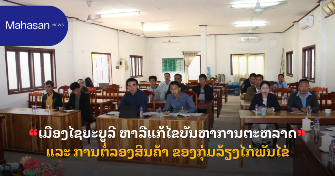 ແຫລ່ງຂ່າວຈາກ ແຂວງໄຊຍະບູລີ ໃຫ້ຮູ້ວ່າ: ຫ້ອງການ ສະຫະພັນກຳມະບານເມືອງໄຊຍະບູລີ ແຂວງໄຊຍະບູລີ ສົມທົບກັບສະຫະພັນກຳມະບານແຂວງ ແລະ ຫ້ອງການກະສິກຳ ແລະ ສິ່ງແວດລ້ອມເມືອງ ຈັດກອງປະຊຸມປຶກສາຫາລືແກ້ໄຂບັນຫາການຕະຫລາດ ແລະ ການຕໍ່ລອງສິນຄ້າ ຂອງກຸ່ມແຮງງານນອກລະບົບ (ກຸ່ມລ້ຽງໄກ່ພັນໄຂ່) ໃນວັນທີ 18 ທັນວາ 2025 ທີ່ຫ້ອງການກະສິກຳ ແລະ ສິ່ງແວດລ້ອມເມືອງ ໂດຍມີທ່ານ ສີຈັນ ຫານເສິກ ຫົວໜ້າຫ້ອງການກະສິກຳ ແລະ ສິ່ງແວດລ້ອມເມືອງ, ທ່ານ ໄຊຖາວອນ ລັດຕະນະວົງ ຮອງປະທານສະຫະພັນກຳມະບານແຂວງໄຊຍະບູລີ ພ້ອມດ້ວຍຜູ້ຕາງໜ້າຈາກພະແນກການ, ຫ້ອງການ, ໜ່ວຍງານ ແລະ ກຸ່ມລ້ຽງໄກ່ພັນໄຂ່ເຂົ້າຮ່ວມ.
