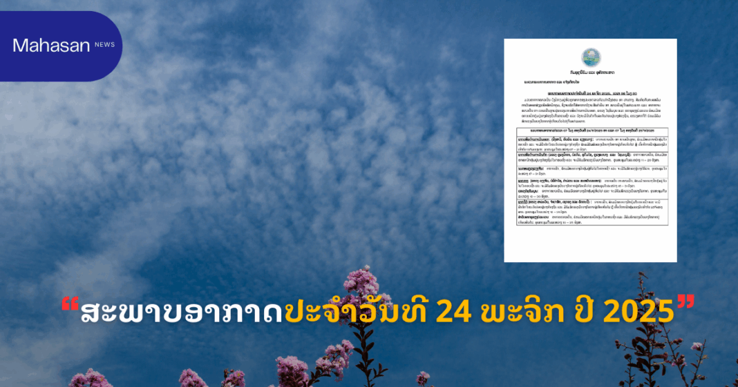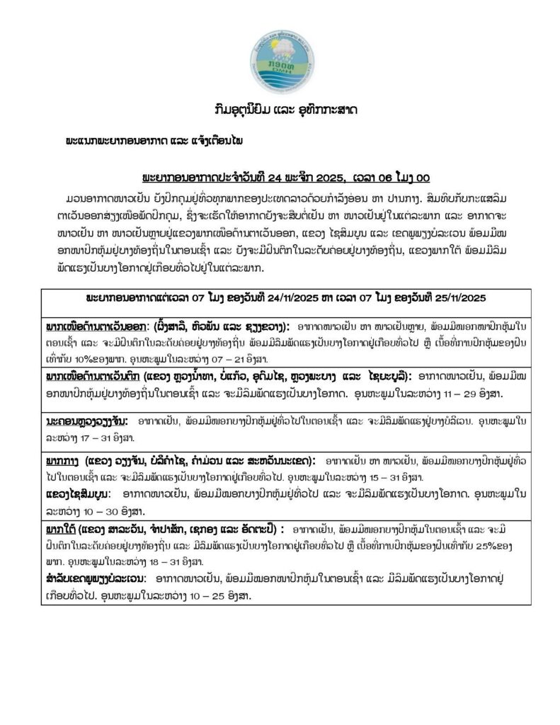 ສະພາບອາກາດປະຈໍາວັນທີ 24 ພະຈິກ ປີ 2025