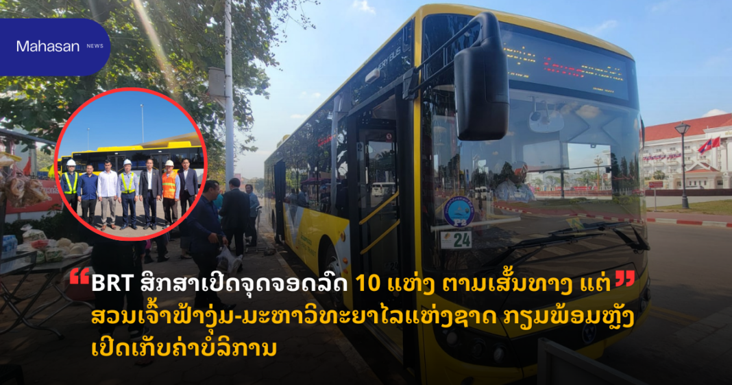 ປັດຈຸບັນ, ການກໍ່ສ້າງໂຄງການ BRT ຄືບໜ້າແລ້ວ 94% ແລະ ກຳລັງສຶກສາສະຖານທີ່ຈອດລົດ 10 ຈຸດ ຕາມເສັ້ນທາງໃຫ້ບໍລິການລົດເມດ່ວນ ແຕ່ ສວນເຈົ້າຟ້າງຸ່ມ ຫາ ມະຫາວິທະຍາໄລແຫ່ງຊາດ ແລະ ກຳລັງເລັ່ງຕີເສັ້ນບ່ອນຈອດລົດຕາມແຄມທາງ ໃນເຂດວັດອິນແປງ – ນ້ຳພຸ.