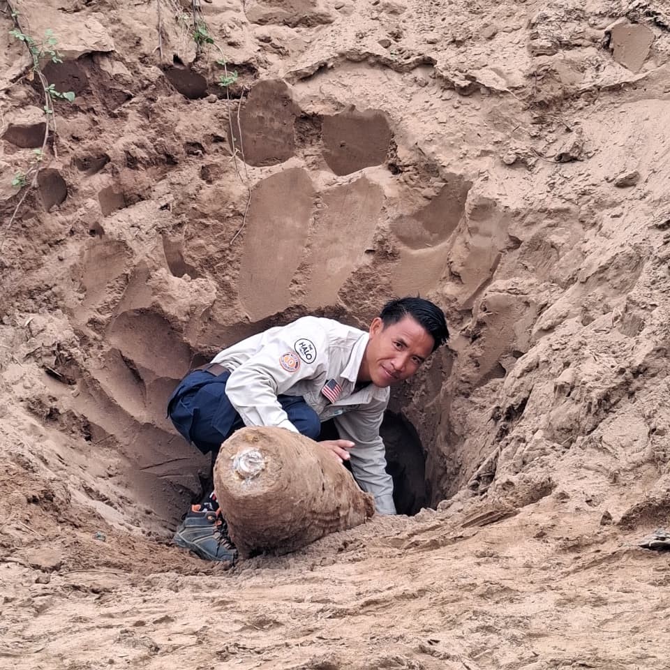 ວັນທີ 24 ທັນວາ 2025, ທີ່ ເມືອງນອງ, ແຂວງສະຫວັນນະເຂດ – ຫ້ອງການຄະນະກໍາມະການຄຸ້ມຄອງເເຫ່ງຊາດ ເພື່ອເເກ້ໄຂບັນຫາລະເບີດບໍ່ທັນເເຕກ ທີ່ຕົກຄ້າງຢູ່ ສປປ ລາວ (ຫ້ອງການ ຄຊກລ) ເເລະ ອໍານາດການປົກຄອງແຂວງສະຫວັນນະເຂດ ໄດ້ຈັດການທໍາລາຍລະເບີດບໍ່ທັນແຕກ (ລບຕ) ໂບມໃຫ່ຍ ຂະໜາດໃຫຍ່ ນໍ້າໜັກ 500 ປອນ (ປະມານ 226.7 ກິໂລກຼາມ) ທີປະຊາຊົນພົບເຫັນຢູ່, ເມືອງນອງ, ແຂວງສະຫວັນນະເຂດ ເມື່ອວັນທີ 05 ທັນວາ 2025 ຢູ່ໃກ້ກັບເຂດຊາຍແດນ ລາວ-ຫວຽດນາມ ໄດ້ຢ່າງສໍາເລັດຜົນ ແລະ ປອດໄພ.
