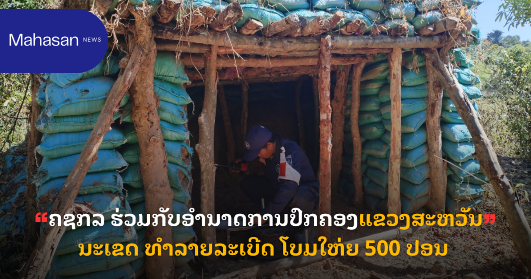 ວັນທີ 24 ທັນວາ 2025, ທີ່ ເມືອງນອງ, ແຂວງສະຫວັນນະເຂດ – ຫ້ອງການຄະນະກໍາມະການຄຸ້ມຄອງເເຫ່ງຊາດ ເພື່ອເເກ້ໄຂບັນຫາລະເບີດບໍ່ທັນເເຕກ ທີ່ຕົກຄ້າງຢູ່ ສປປ ລາວ (ຫ້ອງການ ຄຊກລ) ເເລະ ອໍານາດການປົກຄອງແຂວງສະຫວັນນະເຂດ ໄດ້ຈັດການທໍາລາຍລະເບີດບໍ່ທັນແຕກ (ລບຕ) ໂບມໃຫ່ຍ ຂະໜາດໃຫຍ່ ນໍ້າໜັກ 500 ປອນ (ປະມານ 226.7 ກິໂລກຼາມ) ທີປະຊາຊົນພົບເຫັນຢູ່, ເມືອງນອງ, ແຂວງສະຫວັນນະເຂດ ເມື່ອວັນທີ 05 ທັນວາ 2025 ຢູ່ໃກ້ກັບເຂດຊາຍແດນ ລາວ-ຫວຽດນາມ ໄດ້ຢ່າງສໍາເລັດຜົນ ແລະ ປອດໄພ.