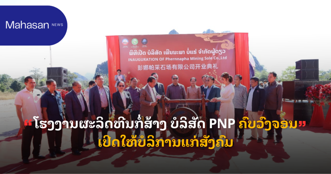 ພິທີເປີດໂຮງງານຜະລິດຫີນກໍ່ສ້າງ ຂອງບໍລິສັດ ເພີນນະພາ PNP ຄົບວົງຈອນ ຈໍາກັດ ໄດ້ຈັດຂຶ້ນໃນວັນທີ 27 ທັນວາຜ່ານມານີ້, ທີ່ບ້ານນໍ້າດິກ ເມືອງຫີນບູນ ແຂວງຄຳມ່ວນ, ເປັນກຽດເຂົ້າຮ່ວມມີທ່ານ ວັນໄຊ ພອງສະຫວັນ ເລຂາພັກແຂວງຄຳມ່ວນ ແລະ ແຂກຖືກເຊີນເຂົ້າຮ່ວມ.