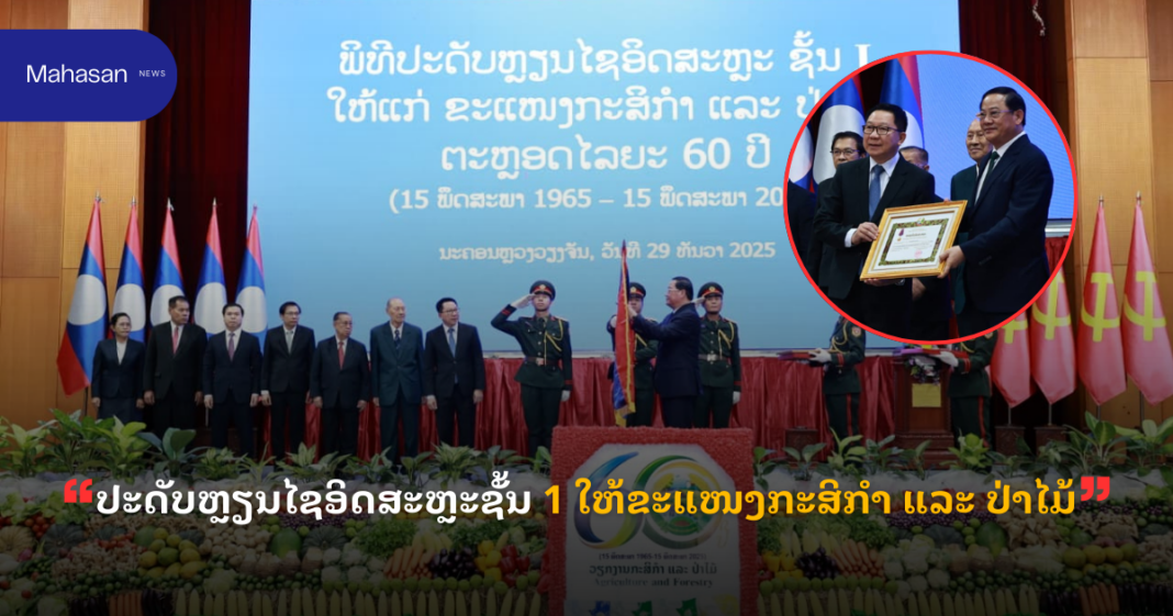 ປະດັບຫຼຽນໄຊອິດສະຫຼະຊັ້ນ 1 ໃຫ້ຂະແໜງກະສິກໍາ ແລະ ປ່າໄມ້