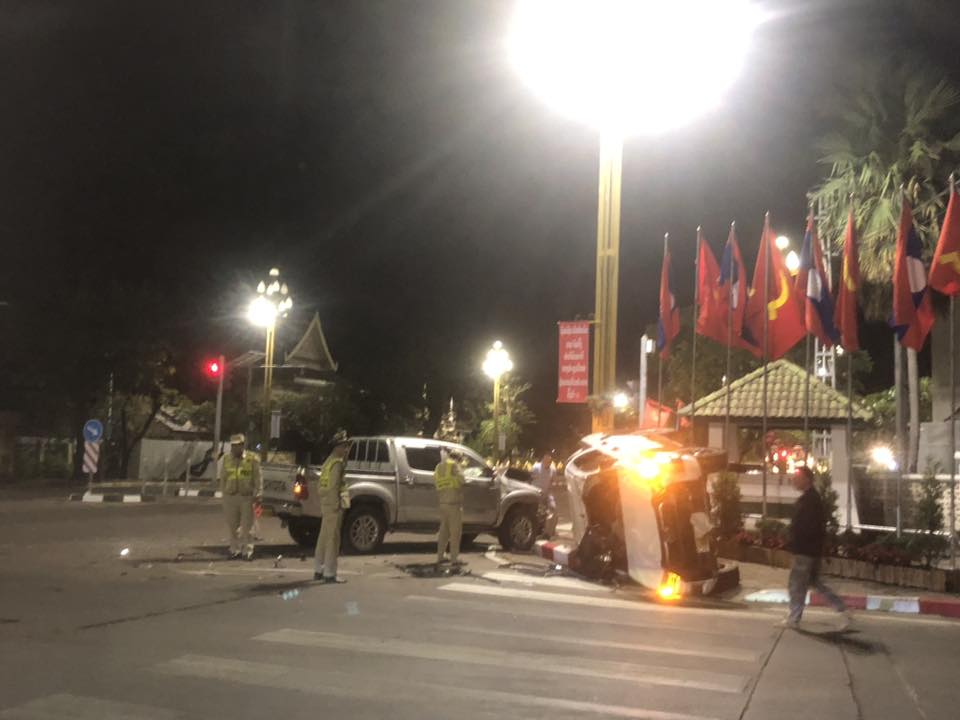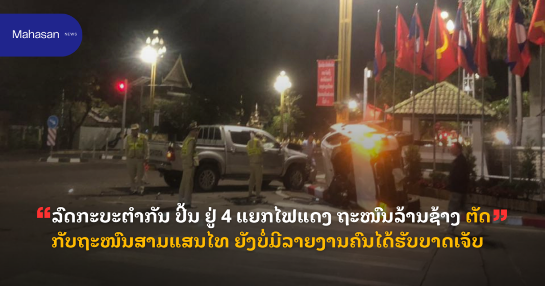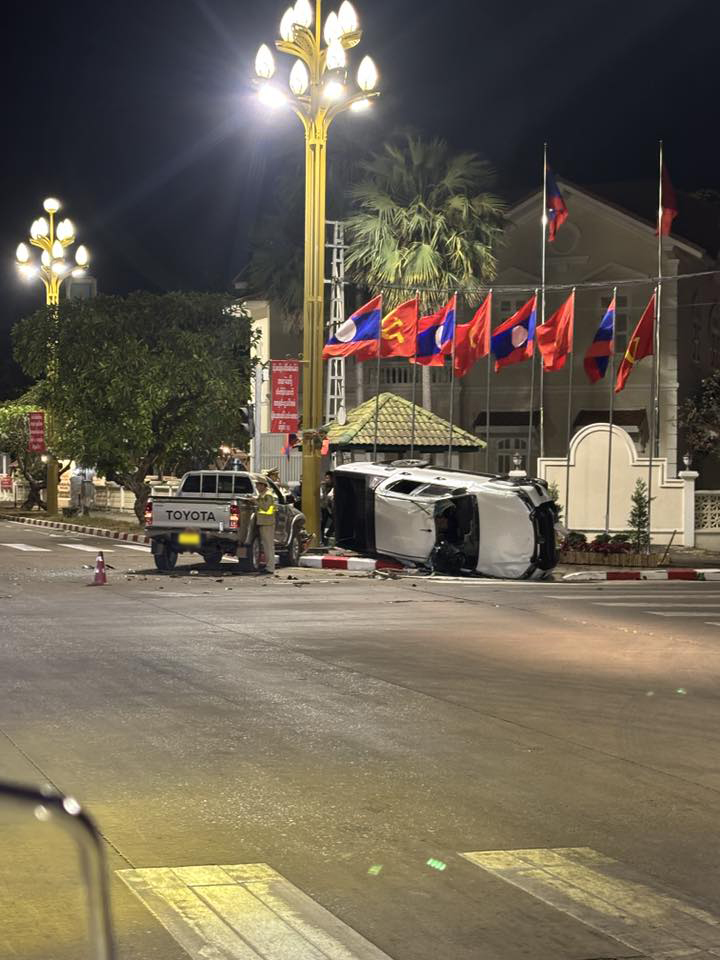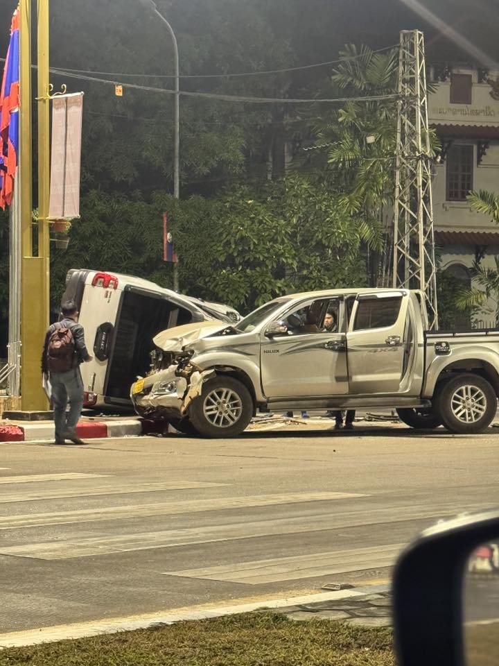 ເວລາປະມານ 23:15 ໂມງ ວັນທີ 7 ມັງກອນ 2026 ເກີດອຸປະຕິເຫດລົດກະບະຕຳກັນ ຈົນເຮັດໃຫ້ຄັນໜຶ່ງປີ້ນທ້ອງ ຢູ່ 4 ແຍກໄຟແດງ ຖະໜົນລ້ານຊ້າງ ຕັດກັບ ຖະໜົນສາມແສນໄທ ເມືອງຈັນທະບູລີ ນະຄອນຫລວງວຽງຈັນ. ຍັງບໍ່ມີລາຍງານຄົນໄດ້ຮັບບາດເຈັບ ສ່ວນສາເຫດຍັງຢູ່ໃນຂັ້ນຕອນເກັບກຳຂໍ້ມູນຂອງເຈົ້າໜ້າທີ່.