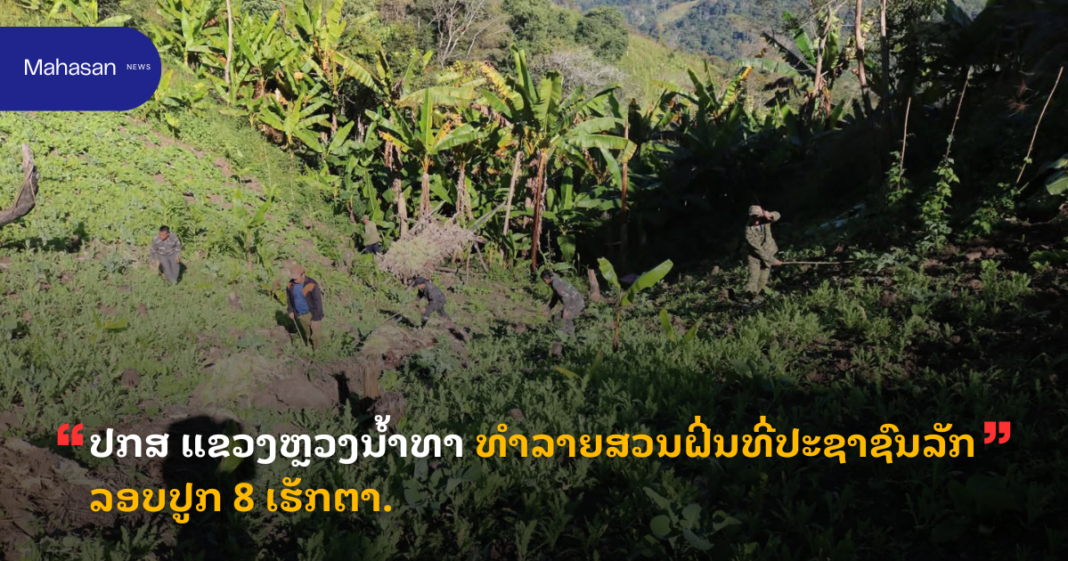 ປກສ ແຂວງຫຼວງນ້ຳທາ ທຳລາຍສວນຝິ່ນທີ່ປະຊາຊົນລັກລອບປູກ 8 ເຮັກຕາ.