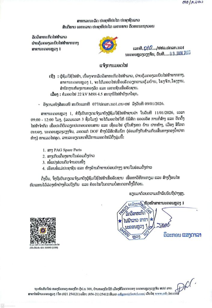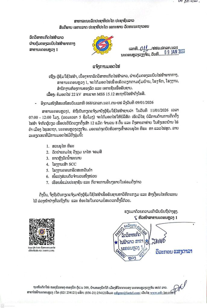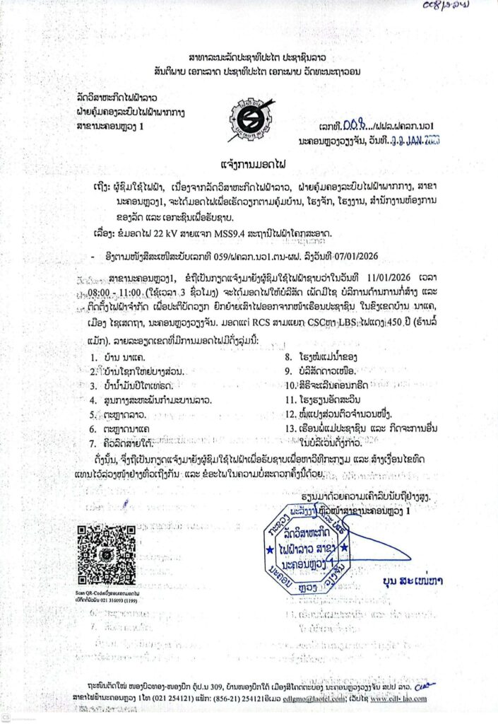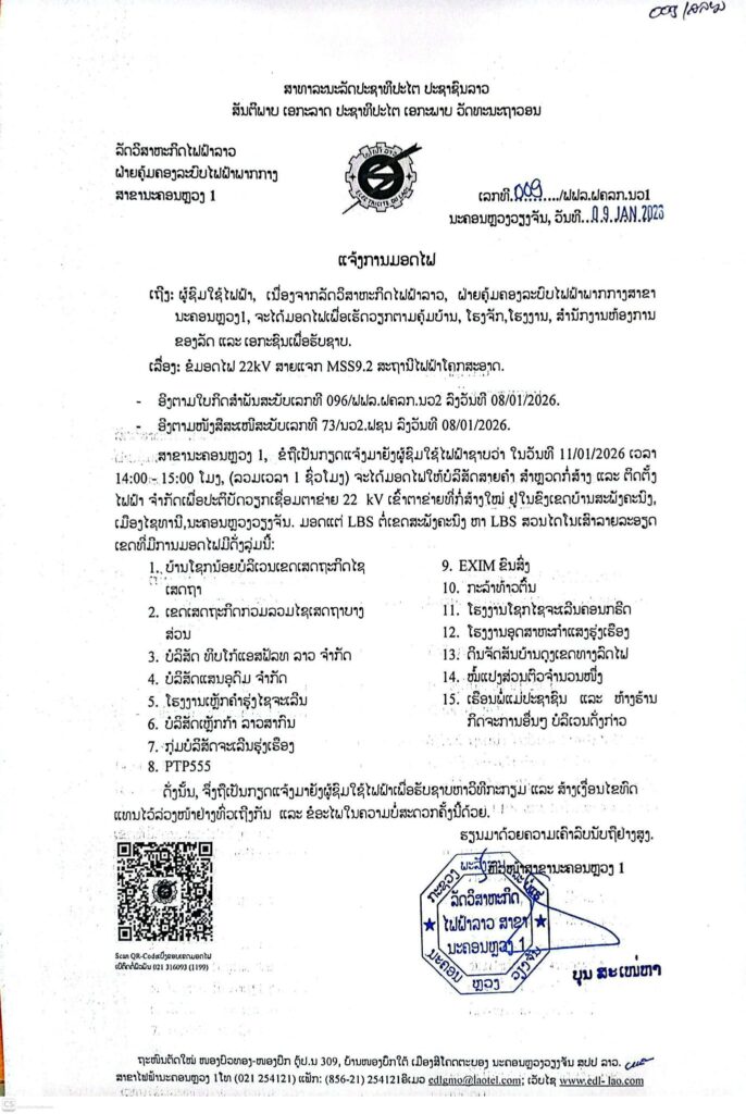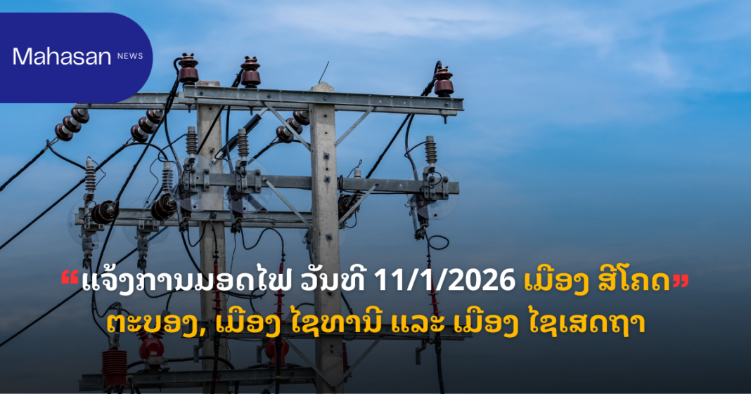 ແຈ້ງການ ແຈ້ງການມອດໄຟ ວັນທີ 11/1/2026 ເມືອງ ສີໂຄດຕະບອງ, ເມືອງ ໄຊທານີ ແລະ ເມືອງ ໄຊເສດຖາ By Pele ທີ 9 January, 2026 0 697 Share FacebookTwitterPinterestWhatsApp Must read ປະໂຫຍດຂອງ”ໝາກໂທງເທງ” ໝາກໄມ້ ຕ້ານມະເຮັງ-ເສັ້ນເລືອດຫົວໃຈຕີບ ທີ 9 January, 2026 ສາລະວັນ ທໍາລາຍສິນຄ້າໝົດອາຍຸ ແລະ ສິນຄ້າລອກລຽນແບບ ທີ 9 January, 2026 ທ່ານ ໂດໂນ ທຣຳ ລົງນາມໃນຄຳສັ່ງຖອນ ອາເມຣິກາ ອອກຈາກ 66 ອົງການຈັດຕັ້ງສາກົນ ທີ 9 January, 2026 ຂ່າວຕ່າງປະເທດຣັດເຊຍປະເມີນຄວາມໜາຂອງນ້ຳກ້ອນຜິດພາດເຮັດໃຫ້ມີລົດໃຫຍ່ຕົກທະລຸແຜ່ນນ້ຳກ້ອນ. ທີ 9 January, 2026 Pele ທີ່ມາ: EDL LAOS ລັດວິສາຫະກິດໄຟຟ້າລາວ ສາຂານະຄອນຫຼວງ1 Share FacebookTwitterPinterestWhatsApp Previous articleປະໂຫຍດຂອງ”ໝາກໂທງເທງ” ໝາກໄມ້ ຕ້ານມະເຮັງ-ເສັ້ນເລືອດຫົວໃຈຕີບ More articles ແຈ້ງການມອດໄຟ ວັນທີ 10-11/1/2026 ເມືອງ ຈັນທະບູລີ, ສີໂຄດຕະບອງແລະ ໄຊເສດຖາ ທີ 8 January, 2026 ພະແນກ ໂຍທາທິການ ແລະ ຂົນສົ່ງ ແຂວງຫລວງພະບາງ ອອກແຈ້ງການຈະມີການສ້ອມແປງເສັ້ນທາງຢູ່ຕົວເມືອງ ນະຄອນຫລວງພະບາງ 15 ເສັ້ນ ລາຍລະອຽດກດັ່ງລຸ່ມນີ້: ທີ 7 January, 2026 ເບຍລາວ ແລະ ນໍ້າດື່ມປັບຂຶ້ນລາຄາ! ເລີ່ມ ທີ 05 ມັງກອນ 2026 ລາຍລະອຽດເເຈ້ງການດັ່ງລຸ່ມນີ້: ທີ 6 January, 2026 LEAVE A REPLY Cancel reply Comment: Please enter your comment! Name:* Please enter your name here Email:* You have entered an incorrect email address! Please enter your email address here Website: Save my name, email, and website in this browser for the next time I comment. - Advertisement - Latest article ປະໂຫຍດຂອງ”ໝາກໂທງເທງ” ໝາກໄມ້ ຕ້ານມະເຮັງ-ເສັ້ນເລືອດຫົວໃຈຕີບ ທີ 9 January, 2026 ສາລະວັນ ທໍາລາຍສິນຄ້າໝົດອາຍຸ ແລະ ສິນຄ້າລອກລຽນແບບ ທີ 9 January, 2026 ທ່ານ ໂດໂນ ທຣຳ ລົງນາມໃນຄຳສັ່ງຖອນ ອາເມຣິກາ ອອກຈາກ 66 ອົງການຈັດຕັ້ງສາກົນ ທີ 9 January, 2026 ຂ່າວຕ່າງປະເທດຣັດເຊຍປະເມີນຄວາມໜາຂອງນ້ຳກ້ອນຜິດພາດເຮັດໃຫ້ມີລົດໃຫຍ່ຕົກທະລຸແຜ່ນນ້ຳກ້ອນ. ທີ 9 January, 2026 ຄະນະບໍລິຫານງານສູນກາງພັກ ສະໄໝທີ XII ວາງກະຕ່າດອກໄມ້ ຢູ່ຫໍພິພິທະພັນ ໄກສອນ ພົມວິຫານ ທີ 9 January, 2026