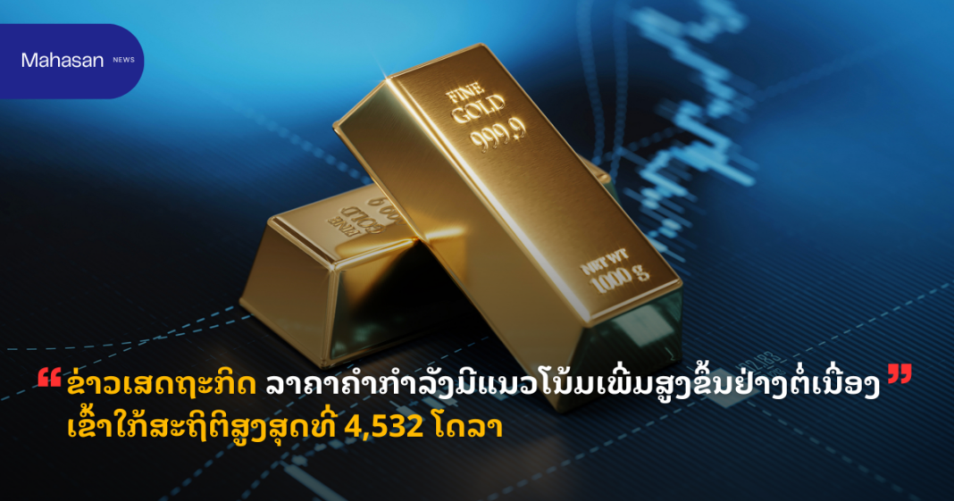 ຂ່າວເສດຖະກິດ ລາຄາຄຳກຳລັງມີແນວໂນ້ມເພີ່ມສູງຂຶ້ນຢ່າງຕໍ່ເນື່ອງເຂົ້າໃກ້ສະຖິຕິສູງສຸດທີ່ 4,532 ໂດລາ