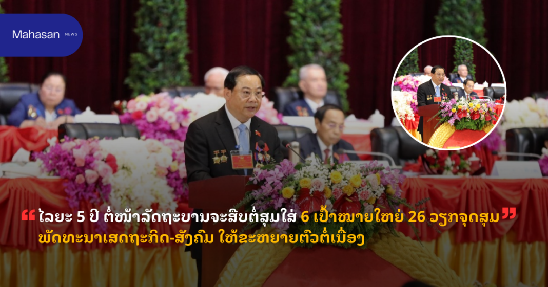 ໄລຍະ 5 ປີ ຕໍ່ໜ້າລັດຖະບານຈະສືບຕໍ່ສຸມໃສ່ 6 ເປົ້າໝາຍໃຫຍ່ 26 ວຽກຈຸດສຸມພັດທະນາເສດຖະກິດ-ສັງຄົມ ໃຫ້ຂະຫຍາຍຕົວຕໍ່ເນື່ອງ