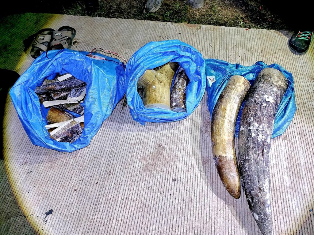 ເຫດການນີ້ ເຈົ້າໜ້າທີ່ສາມາດຄວບຄຸມຕົວຜູ້ຕ້ອງສົງໄສໄດ້ 2 ຄົນ ເປັນເພດຊາຍ ອາຍຸ 21 ປີ ແລະ 18 ປີ, ເຊິ່ງທັງສອງເປັນຄົນໃນພື້ນທີ່ດັ່ງກ່າວ. ຈາກການກວດກາບໍລິເວນອ້ອມຂ້າງ, ໄດ້ພົບເຫັນເປົາປຸ໋ຍສີຟ້າຈຳນວນ 9 ເປົາ ວາງຖິ້ມໄວ້ແຄມຝັ່ງພາຍໃນເປົາ ເຫັນວ່າມີ ງາຊ້າງ ຈຳນວນ 55 ອັນ ນ້ຳໜັກລວມປະມານ 169 ກິໂລກຣາມ.