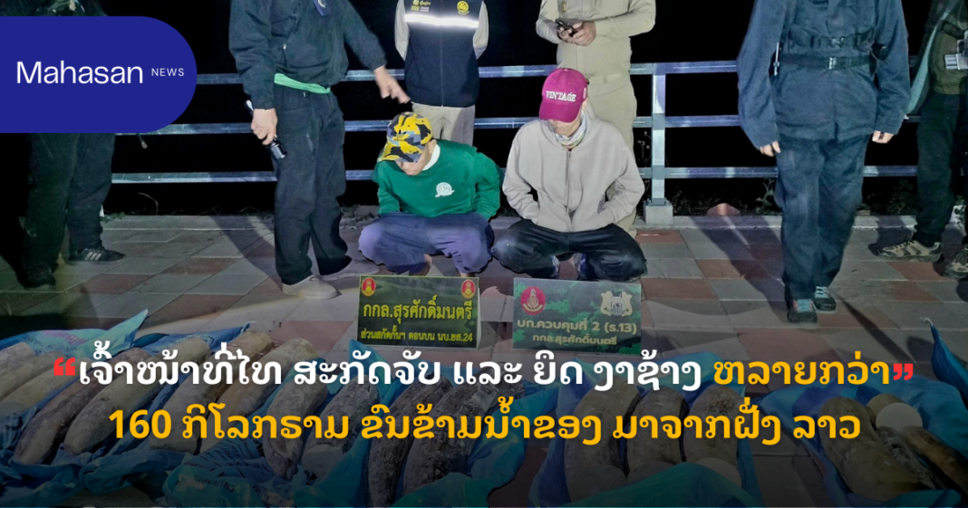 ເຈົ້າໜ້າທີ່ໄທ ສະກັດຈັບ ແລະ ຍຶດ ງາຊ້າງ ຫລາຍກວ່າ 160 ກິໂລກຣາມ ຂົນຂ້າມນ້ຳຂອງ ມາຈາກຝັ່ງ ລາວ
