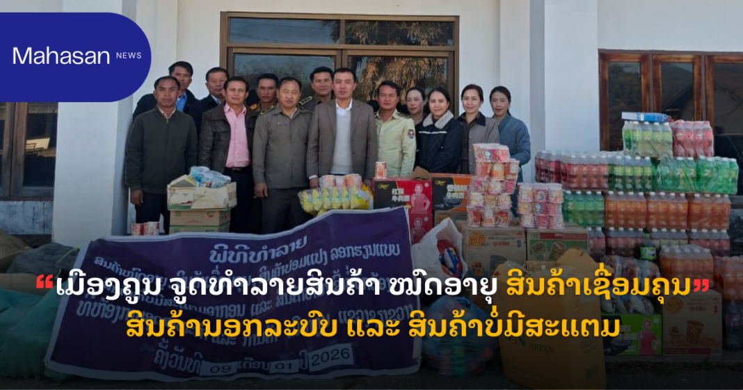 ວັນທີ 9 ມັງກອນ 2026 ຫ້ອງການອຸດສະຫະກໍາ ແລະ ການຄ້າເມືອງຄູນ ແຂວງຊຽງຂວາງໄດ້ທໍາລາຍສິນຄ້າໝົດອາຍຸ, ສິນຄ້າໝົດອາຍຸ,ສິນຄ້າເສື່ອມຄຸນນະພາບ ແລະ ສິນຄ້ານໍາເຂົ້າບໍ່ຖືກຕ້ອງຢູ່ທີ່ສະໜາມຂີ້ເຫຍື້ອ ພາຍໃຕ້ການເປັນປະທານຂອງ ທ່ານ ສີດາວັນ ຄໍາສີວໍລະວົງ ຫົວໜ້າຫ້ອງການອຸດສະຫະກໍາ ແລະ ການຄ້າເມືອງຄູນ, ມີຂະແໜງການທີ່ກ່ຽວຂ້ອງຂັ້ນເມືອງ ເຂົ້າຮ່ວມ.