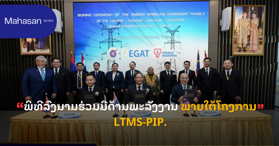 ໃນວັນທີ 14 ມັງກອນ 2026 ຢູ່ທີ່ ນະຄອນຫຼວງບາງກອກ ສຳນັກງານໃຫຍ່ຂອງ ການໄຟຟ້າຝ່າຍຜະລິດແຫ່ງປະເທດໄທ(EGAT) ໄດ້ມີພິທີລົງນາມຮ່ວມມືດ້ານພະລັງງານ ລະຫວ່າງ ລັດວິສາຫະກິດໄຟຟ້າລາວ(EDL), ການໄຟຟ້າຝ່າຍຜະລິດແຫ່ງປະເທດໄທ (EGAT) ແລະ ເທນາການາຊຽນໂນເບີຮັດ (TNB)ປະເທດມາເລເຊຍພາຍໃຕ້ໂຄງການຮ່ວມມື ລາວ-ໄທ-ມາເລເຊຍ-ສິງກະໂປ LTMS-PIP. ຈຸດປະສົງເພື່ອເຊື່ອມລະບົບໄຟຟ້າ 100 ເມກາວັດ (MW) ຈາກ ສປປ ລາວ ໄປຫາ ປະເທດສິງກະໂປ, ໂດຍຜ່ານສາຍສົ່ງທີ່ມີຢູ່ຂອງ ປະເທດໄທ ແລະ ປະເທດມາເລເຊຍ ໄລຍະທີ 2 ມີອາຍຸສັນຍາ 2 ປີ ຈະເປັນການຮ່ວມມືດ້ານພະລັງງານໄຟຟ້າຂອງບັນດາປະເທດອາຊຽນ ບົນພື້ນຖານວິໄສທັດການເຊື່ອມໂຍງຕາຂ່າຍໄຟຟ້າອາຊຽນ (ASEAN Power Grid ຫຼື APG) ໂດຍການລົງນາມຂອງ ທ່ານ ສຸກສະຫວາດ ໂສສຸພັນ ຮອງຜູ້ນຳອໍານວຍການໃຫຍ່ ລັດວິສາຫະກິດໄຟຟ້າລາວ, ທ່ານ ດຣ. ນະຣິນ ເຜົ່າວະນິດ ຜູ້ວ່າການ ການໄຟຟ້າຝ່າຍຜະລິດແຫ່ງປະເທດໄທ ແລະ ທ່ານ Hasmarizal Hassan ຫົວໜ້າເຈົ້າໜ້າທີ່ລະບົບສາຍສົ່ງ (Chief Grid Officer) ມາເລເຊຍ.