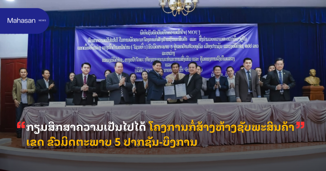ຂປລ. ແຫລ່ງຂ່າວຈາກ ແຂວງບໍລິຄຳໄຊ ໃຫ້ຮູ້ວ່າ: ພິທີເຊັນບົດບັນທຶກຄວາມເຂົ້າໃຈ ເພື່ອສຶກສາສຳຫລວດຄວາມເປັນໄປໄດ້ ໃນການລົງທຶນພັດທະນາໂຄງການກໍ່ສ້າງຫ້າງຊັບພະສິນຄ້າ ແລະ ສິ່ງເອື້ອອຳນວຍຄວາມສະດວກດ້ານຕ່າງໆ ທາງໜ້າດ່ານ (ໂຊນ1) ຂົວມິດຕະພາບ 5 ປາກຊັນ-ບຶງການ ລະຫວ່າງອຳນາດການປົກຄອງແຂວງບໍລິຄຳໄຊ ແລະ ບໍລິສັດ ບີເອັມ ການຄ້າຂາເຂົ້າ-ຂາອອກ ຈຳກັດຜູ້ດຽວ ໄດ້ຈັດຂຶ້ນໃນວັນທີ 15 ມັງກອນ 2026 ທີ່ພະແນກການເງິນແຂວງ ຕາງໜ້າລົງນາມໂດຍທ່ານ ໄຊອຳພອນ ສີຫາວົງ ຄະນະປະຈຳພັກແຂວງ ຜູ້ຊີ້ນຳວຽກງານການລົງທຶນຂັ້ນແຂວງບໍລິຄຳໄຊ ແລະ ທ່ານ ຄອນສະຫວັນ ສອນຄຳໄຊ ປະທານບໍລິສັດ ບີເອັມ ການຄ້າຂາເຂົ້າ-ຂາອອກ ຈຳກັດຜູ້ດຽວ, ມີ ທ່ານ ບຸນລຽ້ງ ດວງສະເພົາທອງ ຮອງປະທານຄະນະກຳມະການປົກຄອງ ແຂວງບໍລິຄຳໄຊ, ທ່ານ ເລື່ອນວິໄລ ຈັນທະລາພັນ ຮອງປະທານສະພາປະຊົນແຂວງ ພ້ອມດ້ວຍພະແນກການ ທີ່ກ່ຽວຂ້ອງຂັ້ນແຂວງ ແລະ ຂັ້ນເມືອງ ເຂົ້າຮ່ວມ.