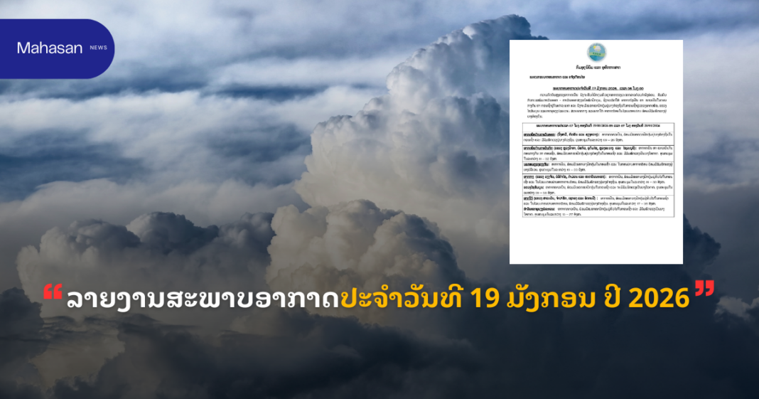 ແຂວງໄຊສົມບູນ: ອາກາດໜາວເຢັນ, ພ້ອມມີໝອກໜາປົກຫຸ້ມໃນຕອນເຊົ້າ ແລະ ຈະມີລົມພັດແຮງເປັນບາງໂອກາດ ອຸນຫະພູມໃນລະຫວ່າງ 09–30 ອົງສາ.