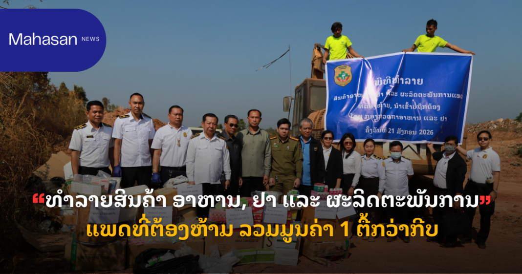 ວັນທີ 21 ມັງກອນຂອງ 2026 ນີ້, ກອງກວດກາອາຫານ ແລະ ຢາ ນະຄອນຫລວງວຽງວຈັນ ໄດ້ຈັດພິທິທຳລາຍສິນຄ້າ ປະເພດອາຫານ, ຢາ ແລະ ຜະລິດຕະພັນການແພດທີ່ຕ້ອງຫ້າມ. ຢູ່ທີ່ສະໜາມຂີ້ເຫຍື້ອ ຫລັກ 32 ນະຄອນຫລວງວຽງຈັນ, ມີທ່ານ ດຣ ບຸນເລື່ອນ ຜະລາດຊະໂຍທາ ຫົວໜ້າກອງກວດກາອາຫານ ແລະ ຢາ ເປັນປະທານ, ມີບັນດາຂະແໜງການ, ອົງການຈັດຕັ້ງ ແລະ ວິຊາການທີ່ກ່ຽວຂ້ອງເຂົ້າຮ່ວມ.