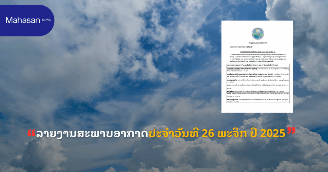 ມວນອາກາດໜາວເຢັນທີ່ປະເທດຈີນ ຍັງຈະສືບຕໍ່ແຜ່ລົງມາປົກຄຸມຢູ່ທົ່ວທຸກພາກຂອງປະເທດລາວ ດ້ວຍກໍາລັງອ່ອນ ຫາປານກາງ. ສົມທົບກັບກະແສລົມຕາເວັນ ອອກສ່ຽງເໜືອພັດປົກຄຸມ.ເຊິ່ງຈະເຮັດໃຫ້ອຸນຫະພູມອາກາດຍັງຈະສືບຕໍ່ເຢັນຫາ ໜາວເຢັນຢູ່ທົ່ວໄປ ແລະ ອາກາດຈະໜາວເຢັນຫລາຍຢູ່ແຂວງພາກເໜືອ, ແຂວງໄຊສົມບູນ ແລະ ເຂດພູພຽງບໍລະເວນ ພ້ອມມີໝອກໜາປົກຫຸ້ມຢູ່ທົ່ວໄປ ແລະ ຈະມີລົມພັດແຮງຢູ່ບາງທ້ອງຖິ່ນໃນແຕ່ລະພາກຕື່ມອີກ.