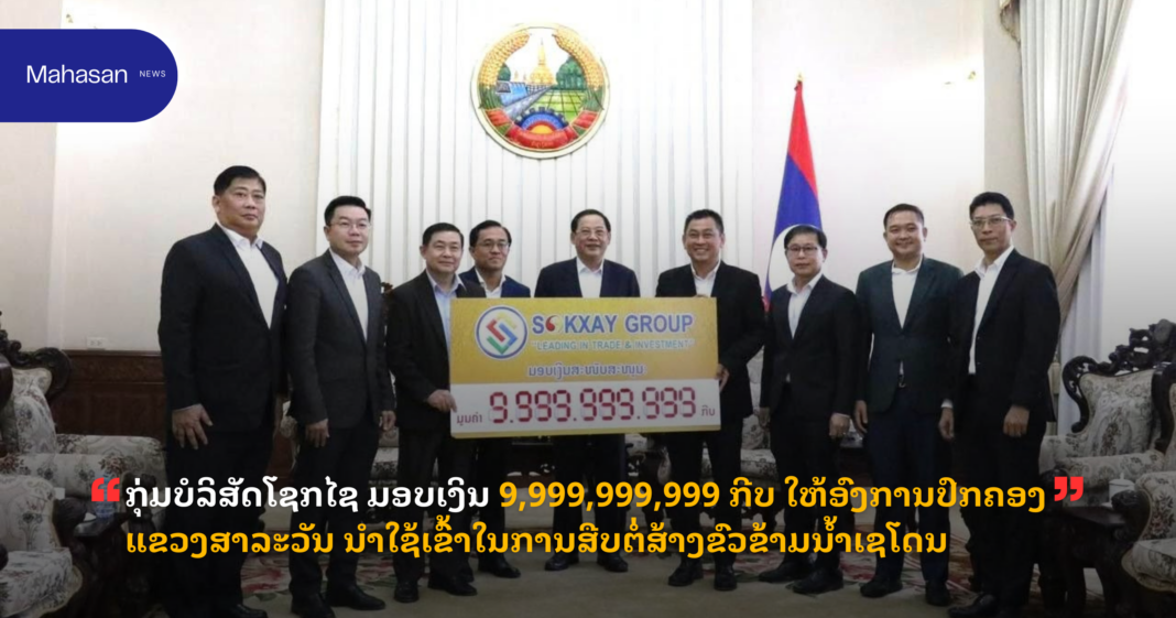 ໃນວັນທີ 19 ມັງກອນ 2026, ທີ່ຫ້ອງວ່າການສຳນັກງານນາຍົກລັດຖະມົນຕີ, ທ່ານ ໂຊກໄຊ ສົມໃຈນຶກ ປະທານກຸ່ມບໍລິສັດໂຊກໄຊ ໄດ້ມອບເງິນຈໍານວນ 9,999,999,999 ກີບ (ເກົ້າຕື້ເກົ້າຮ້ອຍເກົ້າສິບເກົ້າລ້ານເກົ້າແສນເກົ້າສິບເກົ້າພັນເກົ້າຮ້ອຍເກົ້າສິບເກົ້າກີບ) ໃຫ້ອົງການປົກຄອງແຂວງສາລະວັນຕາງໜ້າຮັບໂດຍທ່ານ ປະເດີມພອນ ສົນທະນີ ປະທານຄະນະກໍາມະການປົກຄອງແຂວງສາລະວັນ ແລະ ໃຫ້ກຽດເປັນສັກຂີພະຍານໂດຍທ່ານ ສອນໄຊ ສີພັນດອນ ນາຍົກລັດຖະມົນຕີ, ມີທ່ານ ລັດຖະມົນຕີ ກະຊວງ ໂຍທາທິການ ແລະ ຂົນສົ່ງ, ຮອງລັດຖະມົນຕີ ກະຊວງ ການເງິນ ພ້ອມດ້ວຍພາກສ່ວນກ່ຽວຂ້ອງເຂົ້າຮ່ວມ.