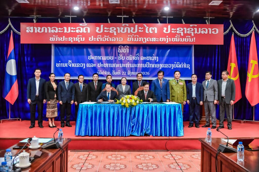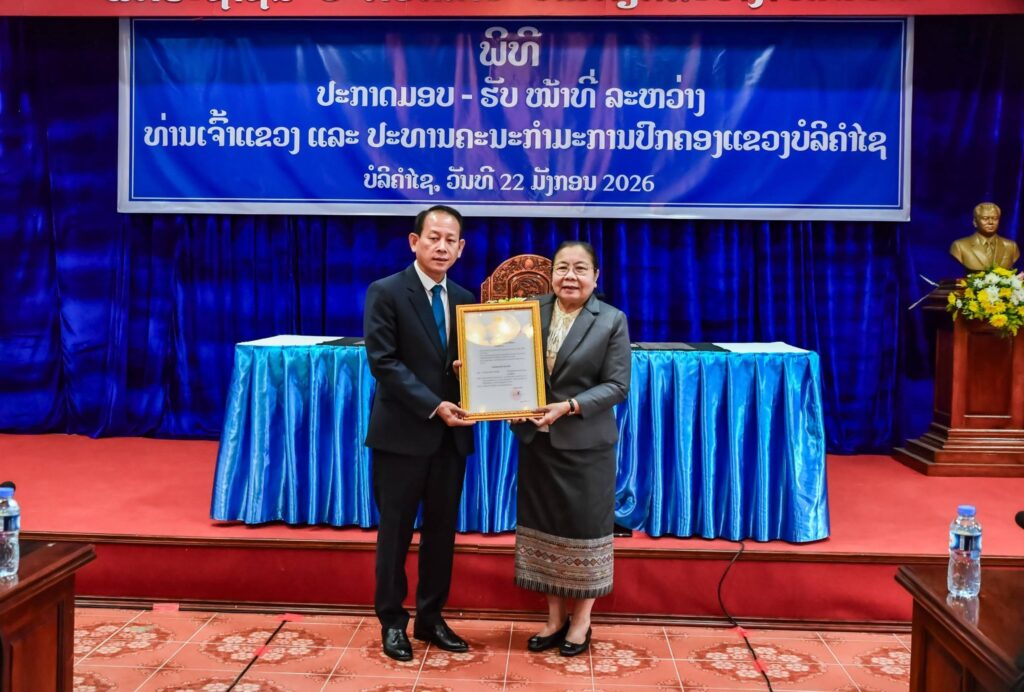 ວັນທີ 22 ມັງກອນ 2026 ນີ້ ຢູ່ທີ່ຫ້ອງວ່າການ ແຂວງ ບໍລິຄຳໄຊ ໄດ້ຈັດພິທີປະກາດ ມອບ-ຮັບໜ້າທີ່ ປະທານຄະນະກຳມະການປົກຄອງແຂວງ ບໍລິຄຳໄຊ ຜູ້ໃໝ່ ລະຫວ່າງ ທ່ານ ສອນທະນູ ທຳມະວົງ ກຳມະການສູນກາງພັກ, ເລຂາພັກແຂວງ, ເຈົ້າແຂວງ ບໍລິຄຳໄຊ ກັບ ທ່ານ ຄຳແຫວນ ປັນຍານຸວົງ ຮອງເລຂາພັກແຂວງ ບໍລິຄຳໄຊ ປະທານຄະນະກຳມະການປົກຄອງແຂວງຜູ້ໃໝ່. ໂດຍມີ ທ່ານ ນາງ ສີໃສ ລືເດດມູນສອນ ກຳມະການກົມການເມືອງສູນກາງພັກ,ເລຂາທິການສູນກາງພັກ ຫົວໜ້າຄະນະຈັດຕັ້ງສູນກາງພັກ, ມີຄະນະປະຈຳພັກແຂວງ, ກຳມະການພັກແຂວງ ແລະ ພາກສ່ວນກ່ຽວຂ້ອງ ເຂົ້າຮ່ວມ.