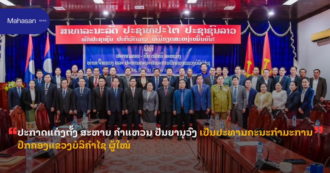ວັນທີ 22 ມັງກອນ 2026 ນີ້ ຢູ່ທີ່ຫ້ອງວ່າການ ແຂວງ ບໍລິຄຳໄຊ ໄດ້ຈັດພິທີປະກາດ ມອບ-ຮັບໜ້າທີ່ ປະທານຄະນະກຳມະການປົກຄອງແຂວງ ບໍລິຄຳໄຊ ຜູ້ໃໝ່ ລະຫວ່າງ ທ່ານ ສອນທະນູ ທຳມະວົງ ກຳມະການສູນກາງພັກ, ເລຂາພັກແຂວງ, ເຈົ້າແຂວງ ບໍລິຄຳໄຊ ກັບ ທ່ານ ຄຳແຫວນ ປັນຍານຸວົງ ຮອງເລຂາພັກແຂວງ ບໍລິຄຳໄຊ ປະທານຄະນະກຳມະການປົກຄອງແຂວງຜູ້ໃໝ່. ໂດຍມີ ທ່ານ ນາງ ສີໃສ ລືເດດມູນສອນ ກຳມະການກົມການເມືອງສູນກາງພັກ,ເລຂາທິການສູນກາງພັກ ຫົວໜ້າຄະນະຈັດຕັ້ງສູນກາງພັກ, ມີຄະນະປະຈຳພັກແຂວງ, ກຳມະການພັກແຂວງ ແລະ ພາກສ່ວນກ່ຽວຂ້ອງ ເຂົ້າຮ່ວມ.