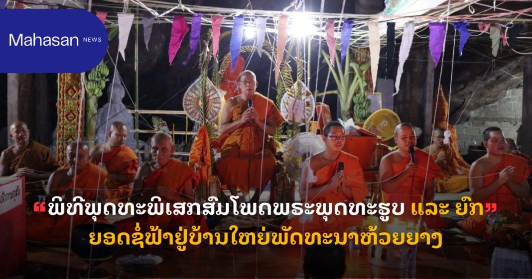 ພິທີພຸດທະພິເສກສົມໂພດພຣະພຸດທະຮູບ ແລະ ຍົກຍອດຊໍ່ຟ້າຢູ່ບ້ານໃຫຍ່ພັດທະນາຫ້ວຍຍາງ