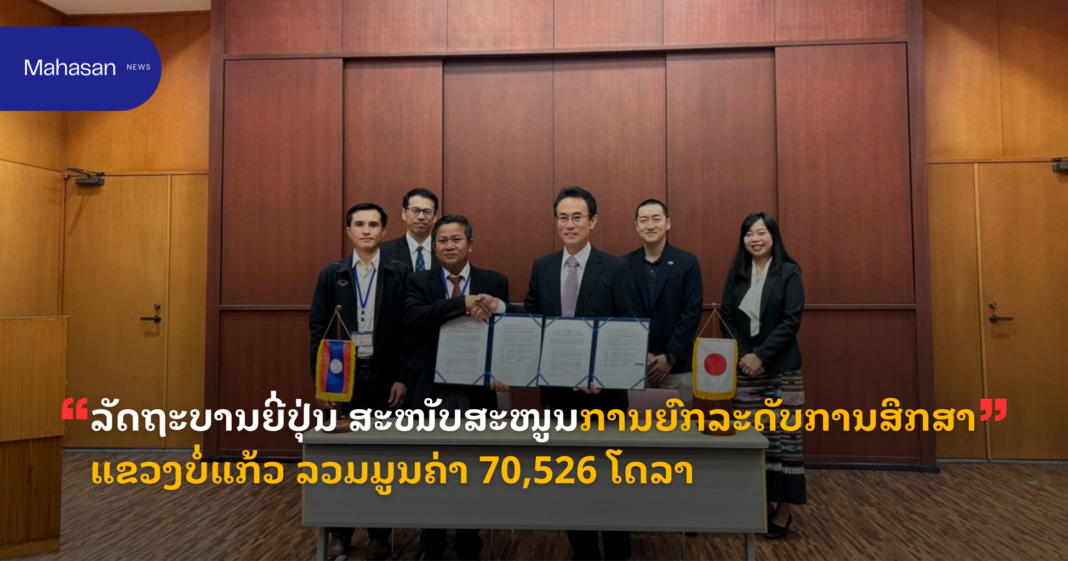 ຂປລ. ລັດຖະບານຍີ່ປຸ່ນໄດ້ໃຫ້ການຊ່ວຍເຫລືອເປັນມູນຄ່າປະມານ 70.526 ໂດລາສະຫະລັດ ໃນການສະໜັບສະໜູນ “ໂຄງການກໍ່ສ້າງໂຮງຮຽນປະຖົມປາງທອງ ໃນແຂວງບໍ່ແກ້ວ” ໃນວັນທີ 26 ມັງກອນ 2026 ເພື່ອຍົກລະດັບຄຸນນະພາບການຮຽນ-ການສອນຂອງຄູ-ນັກຮຽນຂອງໂຮງຮຽນດັ່ງກ່າວ ພາຍໃຕ້ໂຄງການເສີມສ້າງຄວາມໝັ້ນຄົງຂອງມະນຸດຂັ້ນຮາກຖານ (GGP).