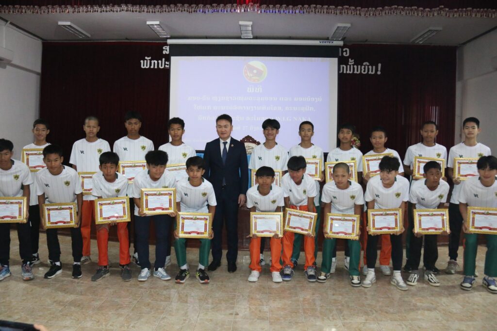 ສຊປລ ມອບຫຼຽນຊາວໜຸ່ມຕະລຸມບອນ ແລະ ໃບຍ້ອງຍໍໃຫ້ ຄະນະຄູຝຶກ-ນັກກິລາເຍົາວະຊົນ ສະໂມສອນ W.I.G NAGA