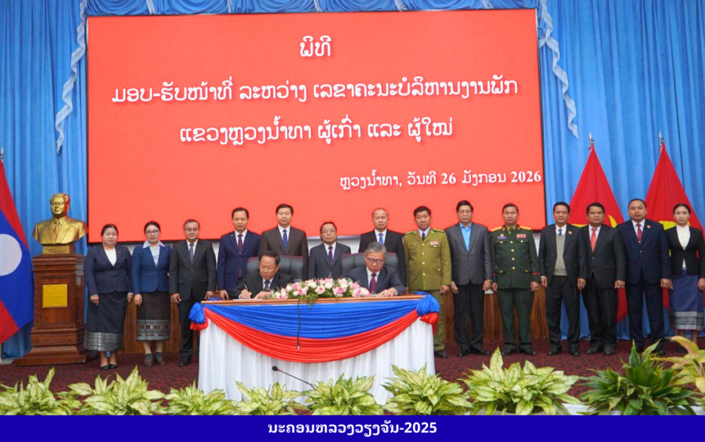 ມອບ-ຮັບໜ້າທີ່ເລຂາຄະນະບໍລິຫານງານພັກ ແຂວງຫຼວງນ້ຳທາ ລະຫວ່າງຜູ້ເກົ່າ ແລະ ຜູ້ໃໝ່
