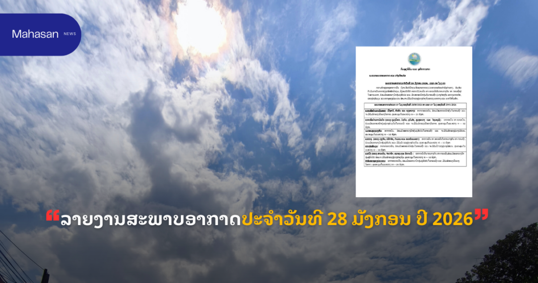 ນະຄອນຫລວງວຽງຈັນ: ອາກາດເຢັນ, ພ້ອມມີໝອກບາງປົກຫຸ້ມຢູ່ທົ່ວໄປໃນຕອນເຊົ້າ ແລະ ຈະມີລົມພັດແຮງຢູ່ບາງບໍລິເວນ ອຸນຫະພູມໃນລະຫວ່າງ 18–32 ອົງສາ.