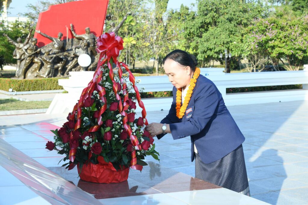 ໂອກາດດຽວກັນ, ຄະນະຮັບຜິດຊອບ ພ້ອມດ້ວຍນັກກິລາ ຍັງໄດ້ເດີນທາງໄປວາງກະຕ່າດອກໄມ້ຢູ່ໜ້າຮູບປັ້ນຫຼໍ່ ປະທານ ໄກສອນ ພົມວິຫານ ເພື່ອເປັນການສະແດງຄວາມຮູ້ບຸນຄຸນ, ເຄົາລົບຮັກ ແລະ ລາຍງານຜົນສໍາເລັດໃນການແຂ່ງຂັນກິລາຄັ້ງນີ້ ອີກດ້ວຍ.