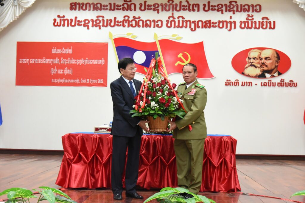 ພິທີມອບ-ຮັບໜ້າທີ່ເລຂາຄະນະບໍລິຫານງານພັກ ລັດຖະມົນຕີກະຊວງປ້ອງກັນຄວາມສະຫງົບ ລະຫວ່າງ ຜູ້ເກົ່າ ແລະ ຜູ້ໃໝ່ ໄດ້ຈັດຂຶ້ນໃນວັນທີ 28 ມັງກອນ 2026, ໂດຍການເຂົ້າຮ່ວມຂອງ ສະຫາຍ ທອງລຸນ ສີສຸລິດ ເລຂາທິ ການໃຫຍ່ ປະທານປະເທດ, ມີຮອງລັດຖະມົນຕີ, ຄະນະ ພັກ-ຄະນະກົມໃຫຍ່, ຫ້ອງວ່າການ, ວິທະຍາຄານ, ກອງບັນຊາການ, ພ້ອມດ້ວຍກົມ-ກອງອ້ອມຂ້າງກະຊວງປ້ອງກັນຄວາມສະຫງົບ, ແຂກຮັບເຊີນ ແລະ ນາຍຕໍາຫຼວດຂັ້ນນໍາພາ-ບັນຊາ ເຂົ້າຮ່ວມ.