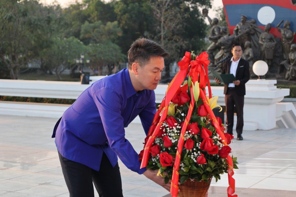 ໃນຕອນເຊົ້າວັນທີ 29 ມັງກອນນີ້, ຄະນະນໍາສູນກາງຊາວໜຸ່ມປະຊາຊົນ ປະຕິວັດລາວ (ສຊປລ) ນໍາໂດຍສະຫາຍ ທອງລີ ສີສຸລິດ ກໍາມະການສູນກາງພັກ, ເລຂາຄະນະບໍລິຫານງານ ສູນກາງຊາວໜຸ່ມປະຊາຊົນປະຕິວັດລາວ ພ້ອມດ້ວຍຄະນະຜູ້ແທນກອງປະຊຸມສາມັນຄົບຄະນະບໍລິຫານງານ ສຊປລ ຄັ້ງທີ 2 ສະໄໝທີ IX ໄດ້ເຂົ້າວາງກະຕ່າດອກໄມ້ອັນຫອມຫວນຕໍ່ໜ້າຮູບປັ້ນຫຼໍ່ປະທານ ໄກສອນ ພົມວິຫານ ຜູ້ນຳທີ່ແສນເຄົາລົບຮັກຂອງປວງຊົນລາວທັງຊາດ.