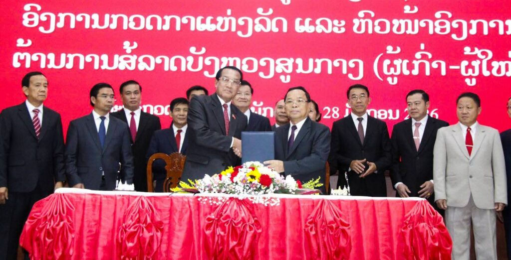 ພິທີມອບ-ຮັບໜ້າທີ່ ລະຫວ່າງ ເລຂາຄະນະພັກ ປະ ທານຄະນະກວດກາສູນກາງພັກ ປະທານອົງການກວດກາແຫ່ງລັດ ແລະ ຫົວໜ້າອົງການຕ້ານການສໍ້ລາດບັງຫຼວງສູນກາງ ຜູ້ເກົ່າ-ຜູ້ໃໝ່ ໄດ້ຈັດຂຶ້ນໃນວັນທີ 28 ມັງກອນນີ້ ທີ່ສະໂມສອນໃຫຍ່ຄະນະກວດກາສູນກາງພັກ, ໃຫ້ກຽດເຂົ້າຮ່ວມ ໂດຍສະຫາຍ ທອງລຸນ ສີສຸລິດ ເລຂາທິການໃຫຍ່ ປະທານປະເທດແຫ່ງ, ມີຜູ້ຕາງໜ້າຈາກຄະນະຈັດ ຕັ້ງສູນກາງພັກ,ຫ້ອງວ່າການສູນກາງພັກ,ຄະນະໂຄສະນາອົບຮົມສູນກາງພັກ, ຄະນະພົວພັນຕ່າງປະເທດສູນກາງພັກ, ສະຖາບັນວິທະຍາສາດເສດຖະກິດ ແລະ ສັງຄົມແຫ່ງຊາດ,ພ້ອມດ້ວຍບັນດາສະຫາຍຮອງປະທານຄະນະກວດກາສູນກາງພັກ, ຄະນະປະຈຳພັກ, ກຳມະການພັກແຂວງຄຳມ່ວນ ແລະ ພະນັກງານຫຼັກແຫຼ່ງ ພາຍໃນຄະນະກວດກາ ເຂົ້າຮ່ວມ.