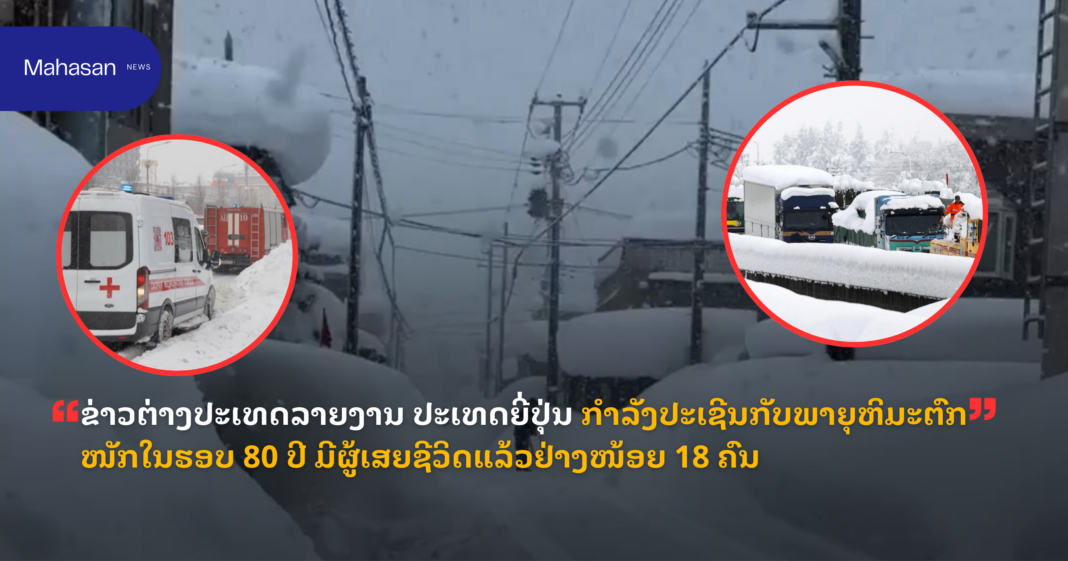 ຂ່າວຕ່າງປະເທດລາຍງານ ປະເທດຍີ່ປຸ່ນ ກຳລັງປະເຊີນກັບພາຍຸຫິມະຕົກໜັກໃນຮອບ 80 ປີ ມີຜູ້ເສຍຊີວິດແລ້ວຢ່າງໜ້ອຍ 18 ຄົນ