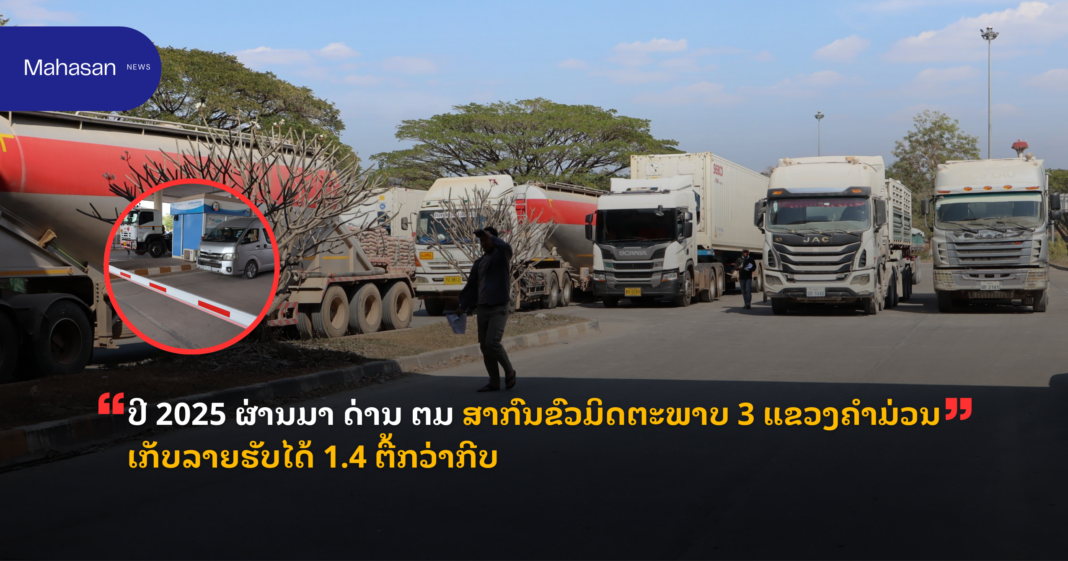 ທ່ານ ພັທ ສຸກທອງ ວົງສາ ໄດ້ກ່າວວ່າ: ການຈັດເກັບລາຍຮັບຄ່າບໍລິການວຽກງານກວດຄົນເຂົ້າ-ອອກເມືອງ ຕາມລັດຖະບັນຍັດເລກທີ 02/ປປທ ຊຶ່ງແມ່ນທະນາຄານພັດທະນາລາວເປັນຜູ້ຈັດເກັບໃນປີ 2025 ສາມາດຈັດເກັບລາຍຮັບໄດ້ທັງໝົດ 1,485,666,000 ກີບ ( ທຽບໃສ່ປີ 2024 ຈັດເກັບໄດ້ 1,313,266,000 ກີບ ເພີ້ມຂຶ້ນ 11.31% ) .ຄົນແຈ້ງເຂົ້າ-ອອກເມືອງທັງໝົດ 414,366 ຄົນ,ຍິງ 137,557 ຄົນ ; ເດັກ 20,891 ຄົນ, ມີ 90 ສັນຊາດ , ພາຫະນະລົດແຈ້ງເຂົ້າ-ອອກທັງໝົດ 378,871 ຄັນ, ມີ 3 ສັນຊາດ .ການຈັດຕັ້ງປະຕິບັດແຜນການວຽກງານກວດຄົນເຂົ້າ-ອອກເມືອງໃນໄລຍະ 1 ປີຜ່ານມາ ເຈົ້າໜ້າທີ່ຕໍາຫຼວດກວດຄົນເຂົ້າ-ອອກເມືອງ ດ່ານສາກົນຂົວມິດຕະພາບ 3 ໄດ້ເອົາໃຈໃສ່ເປັນເຈົ້າການໃນການຕິດຕາມ,ກວດກາ ແລະ ອໍານວຍຄວາມສະດວກໃຫ້ແກ່ພົນລະເມືອງລາວ,ຄົນຕ່າງດ້າວ ແລະ ຄົນຕ່າງປະເທດທີ່ມີຈຸດປະສົງເດີນທາງເຂົ້າ-ອອກ ສປປ ລາວ ໂດຍຜ່ານດ່ານສາກົນຂົວມິດຕະພາບ 3 ເພື່ອຢ້ຽມຢາມ, ທ່ອງທ່ຽວ, ທັດສະນະສຶກສາ, ດໍາເນີນທຸລະກິດ, ອອກແຮງງານ ແລະ ອື່ນໆ ໄດ້ຢ່າງຖືກຕ້ອງຄົບຖ້ວນສົມບູນ , ການເດີນທາງເຂົ້າ-ອອກຂອງກຸ່ມຄົນດັ່ງກ່າວແມ່ນຖືກຕ້ອງຕາມກົດໝາຍ, ລະບຽບການເຂົ້າອອກເມືອງ ແລະ ເປັນການປະກອບສ່ວນອັນສໍາຄັນໃນການສ້າງລາຍຮັບໃຫ້ແກ່ປະເທດຊາດກໍ່ຄືແຂວງຄໍາມ່ວນໄດ້ຫຼາຍພໍສົມຄວນ . ຄຽງຄູ່ກັບດ້ານຕັ້ງໜ້າທີ່ກ່າວມາແລ້ວກໍ່ຍັງມີຂໍ້ຫຍຸ້ງຍາກທີ່ພົບເຫັນບາງກໍລະນີເປັນການລະເມີດການເຂົ້າ-ອອກເມືອງເປັນຕົ້ນແມ່ນ ການພັກເຊົາເກີນກໍານົດທີ່ທາງການອະນຸຍາດ, ການນໍາໃຊ້ໃບຜ່ານແດນໄປເກີນຂອບເຂດ ລວມທັງການລັກລອບຂົນສົ່ງທີ່ຜິດກົດໝາຍ ຊຶ່ງໃນໄລຍະຜ່ານມາ ແມ່ນສາມາດກວດພົບເຫັນໃບກະທ່ອມທີ່ຊຸກເຊື່ອງເຂົ້າມານໍາລົດຂົນສົ່ງຫີນຈໍານວນຫຼາຍກິໂລ ແລະ ຍັງມີກໍລະນີໜຶ່ງອີກທີ່ຜູ້ໂດຍສານໄດ້ຫຼີກລ້ຽງ ຫຼື ແຈ້ງຈໍານວນຄົນເຂົ້າ-ອອກບໍ່ຊັດເຈນໃນການເສຍຄ່າບໍລິການເຂົ້າ-ອອກເມືອງຜ່ານລະບົບທະນາຄານພັດທະນາລາວຈັດເກັບ , ຜ່ານການກວດກາຂອງເຈົ້າໜ້າທີ່ ຕມ ຢູ່ຈຸດກວດກາ ໄດ້ພົບເຫັນກໍລະນີດັ່າງກ່າວບໍ່ເສຍຄ່າບໍລິການເຂົ້າ-ອອກເມືອງຜ່ານລະບົບທະນາຄານທີ່ບໍ່ຖືກກັບຈໍານວນຄົນຕົວຈິງ.