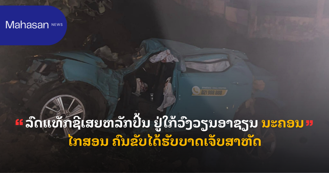 ລົດແທັກຊີເສຍຫລັກປີ້ນ ຢູ່ໃກ້ວົງວຽນອາຊຽນ ນະຄອນໄກສອນ ຄົນຂັບໄດ້ຮັບບາດເຈັບສາຫັດ