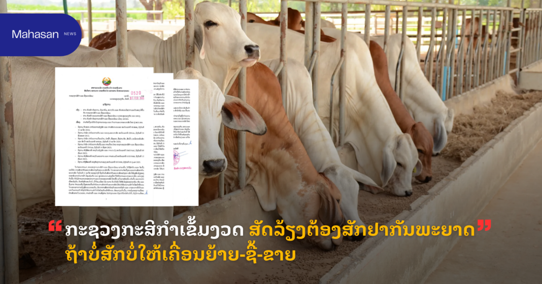 ກະຊວງກະສິກຳເຂັ້ມງວດ ສັດລ້ຽງຕ້ອງສັກຢາກັນພະຍາດ ຖ້າບໍ່ສັກບໍ່ໃຫ້ເຄື່ອນຍ້າຍ-ຊື້-ຂາຍ